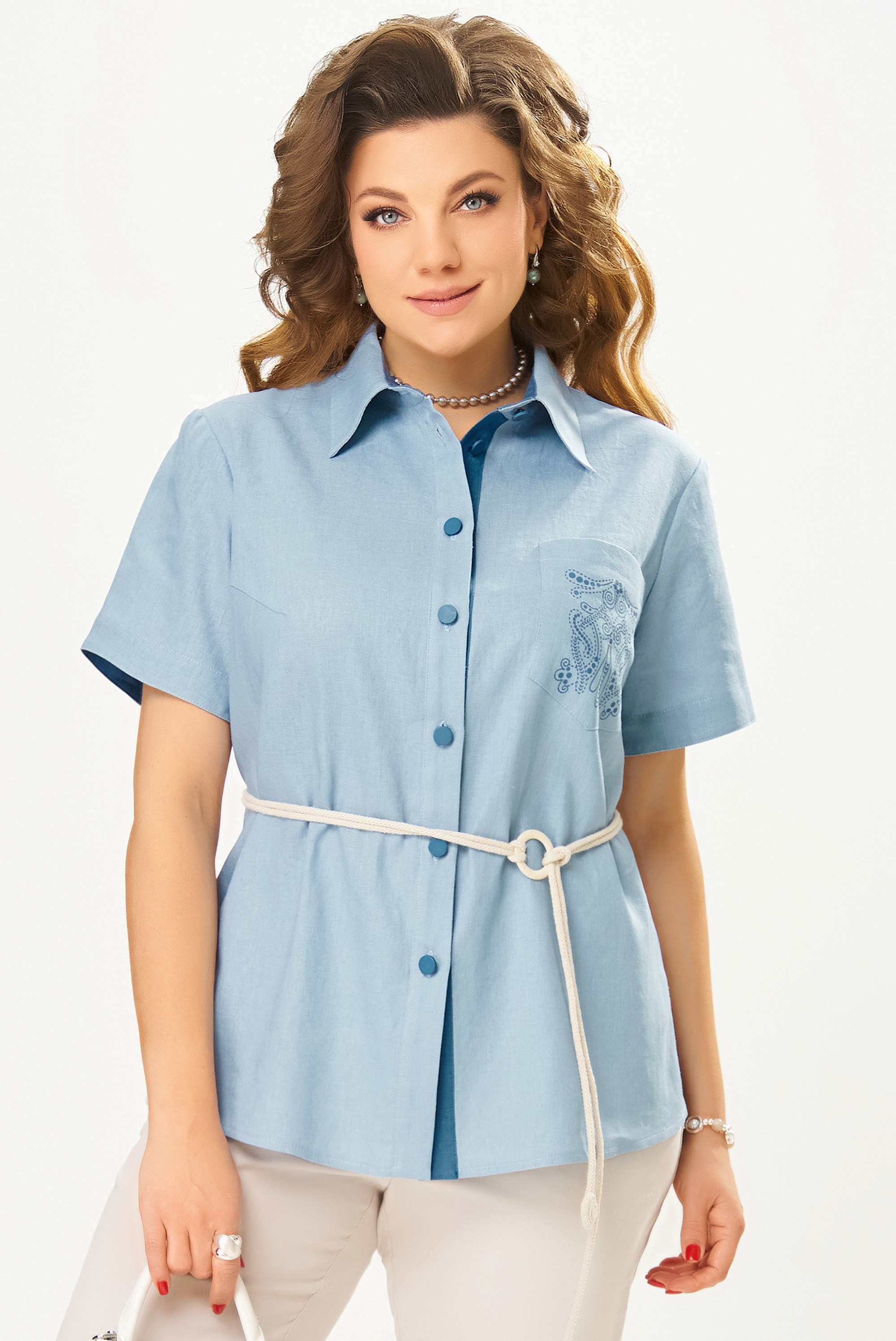 Воротник-стойка рубашечного типа добавляет структуру и выразительность, а нагрудная выточка обеспечивает идеальную посадку. Левую полочку украшает накладной карман с декоративной печатью, подчеркивая стильный акцент. По спинке блузки расположена изящная декоративная печать, придающая изделию оригинальности и индивидуальности.
