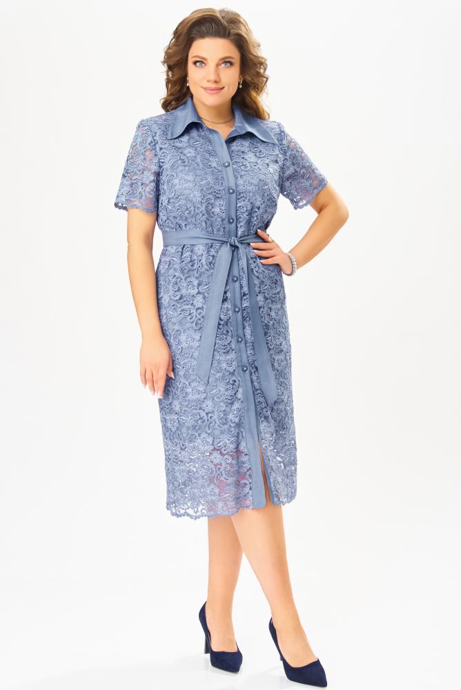 [description] => Нарядное платье "Ивка" выполнено из кружевной ткани с джинсовой отделкой. Платье прямого силуэта на подкладке со съемным поясом. Платье с застежкой на петли и пуговицы, планка отрезная, воротник отложной со стойкой рубашечного типа. По полочке - нагрудная выточка, рукав втачной одношовный, по низу изделия и рукавов декоративный край. Платье идеально для любого праздника и для повседневной носки.