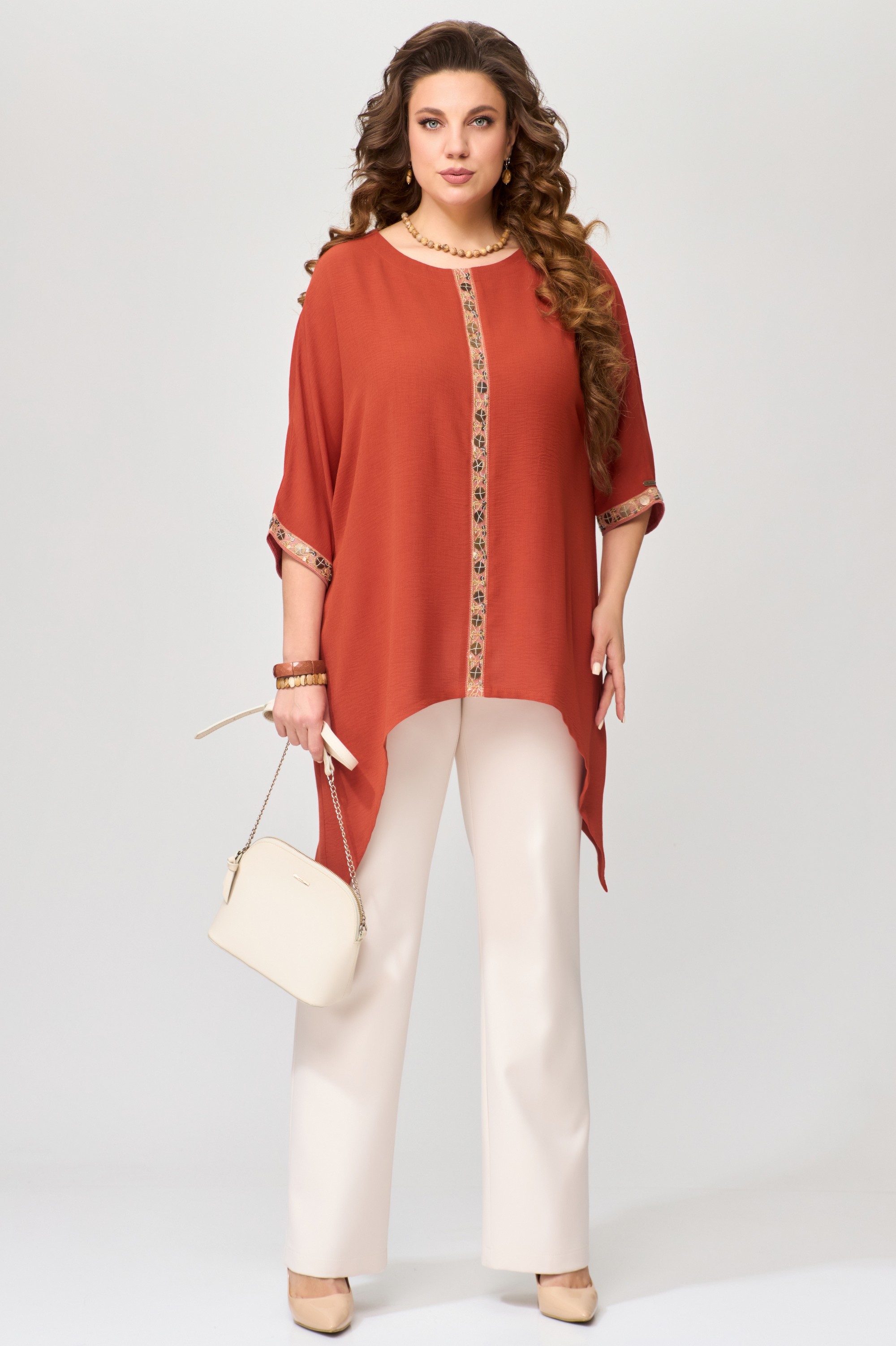Туника "Удеса" оверсайз выполнена из текстильной ткани без подкладки, ткань легкая, стрейч и очень практичная в носке. Рукав цельнокроеный, горловина обработана обтачкой, обтачка закреплена отделочной строчкой. Низ изделия обработан швом в подгибку, по центру полочки нашита тесьма (монетки на сетке), низ рукава тоже обработан декоративной тесьмой.