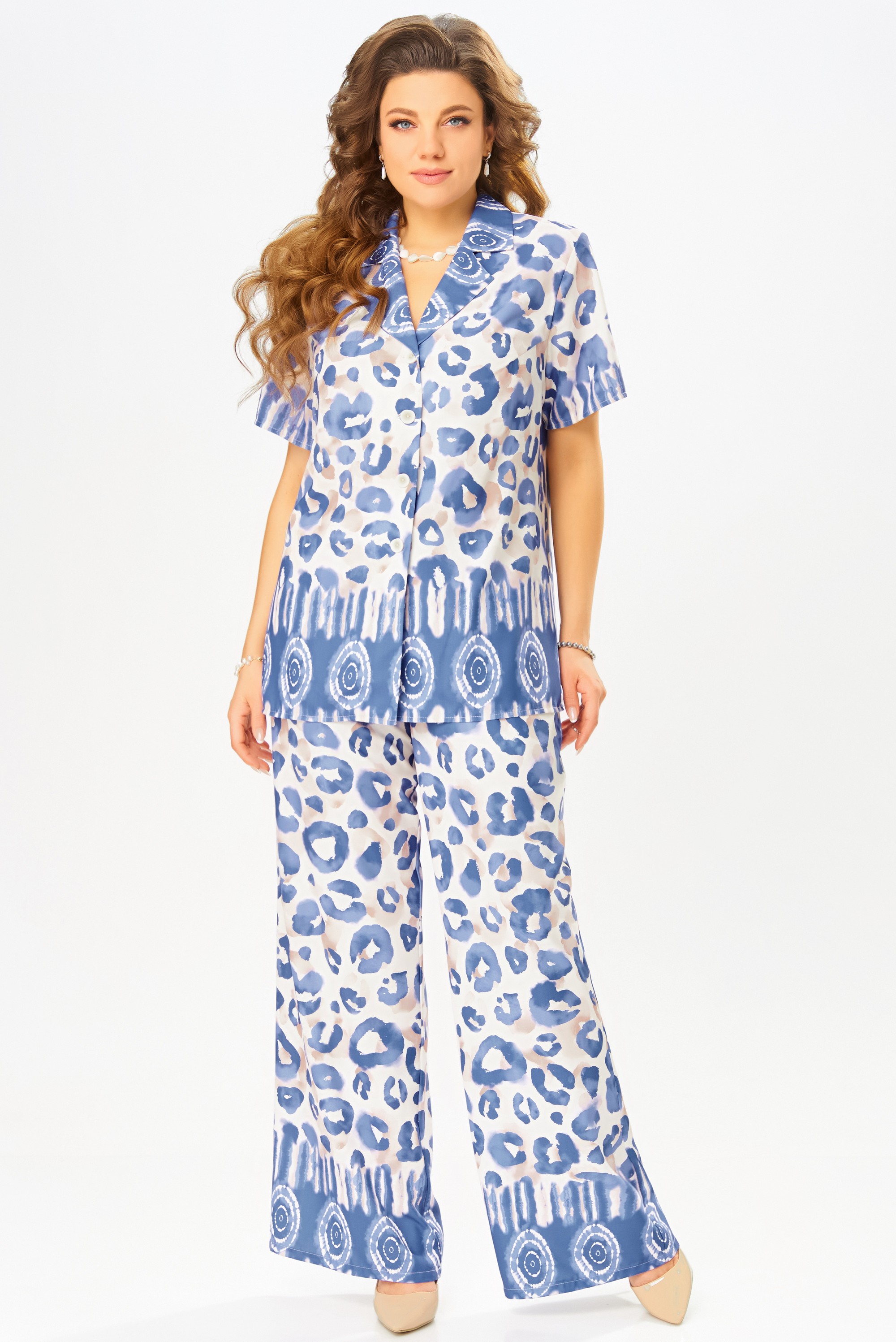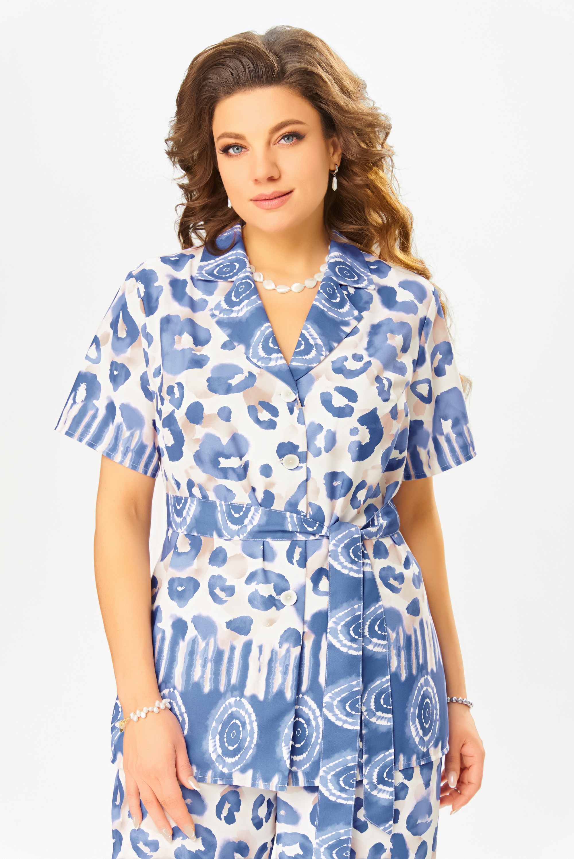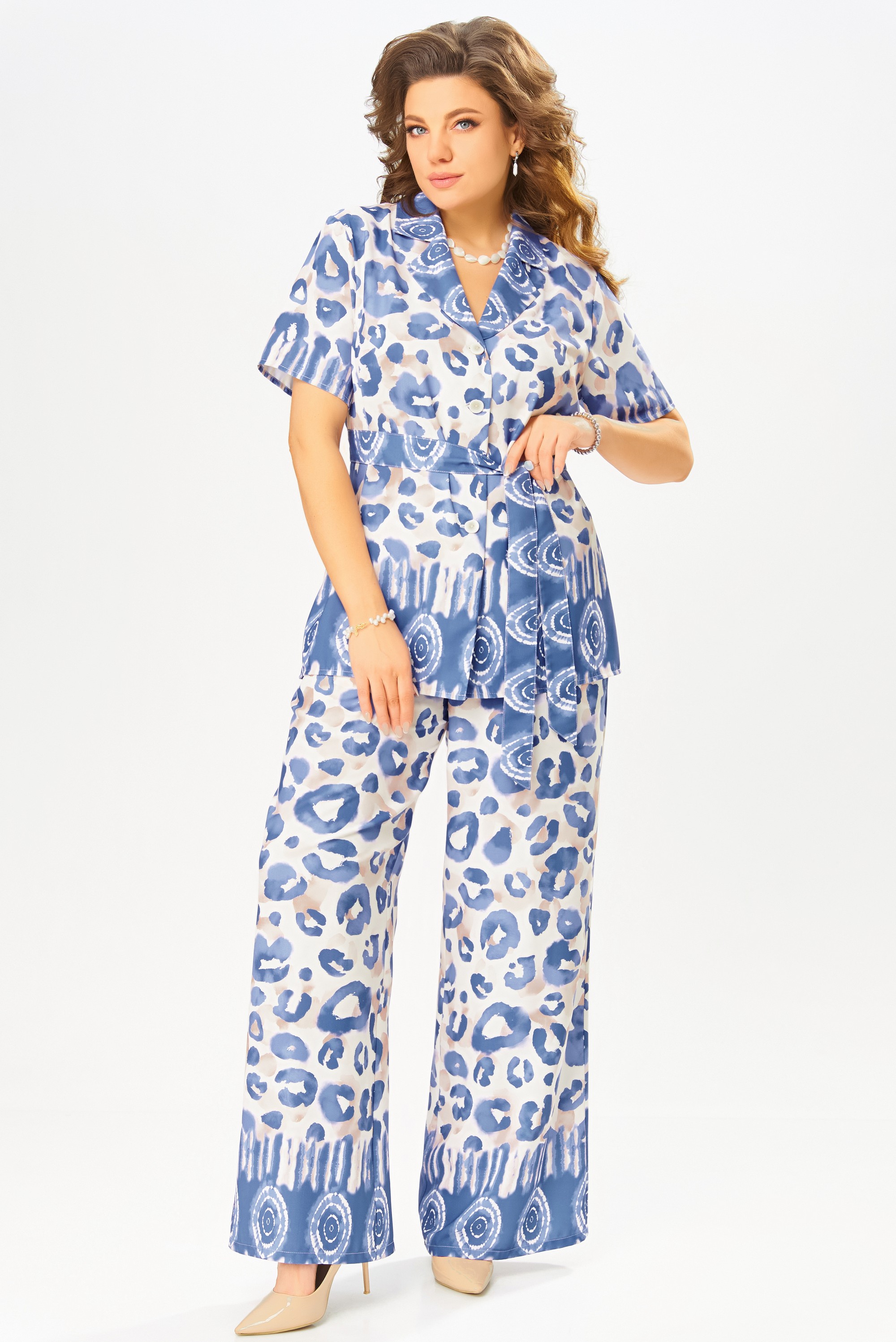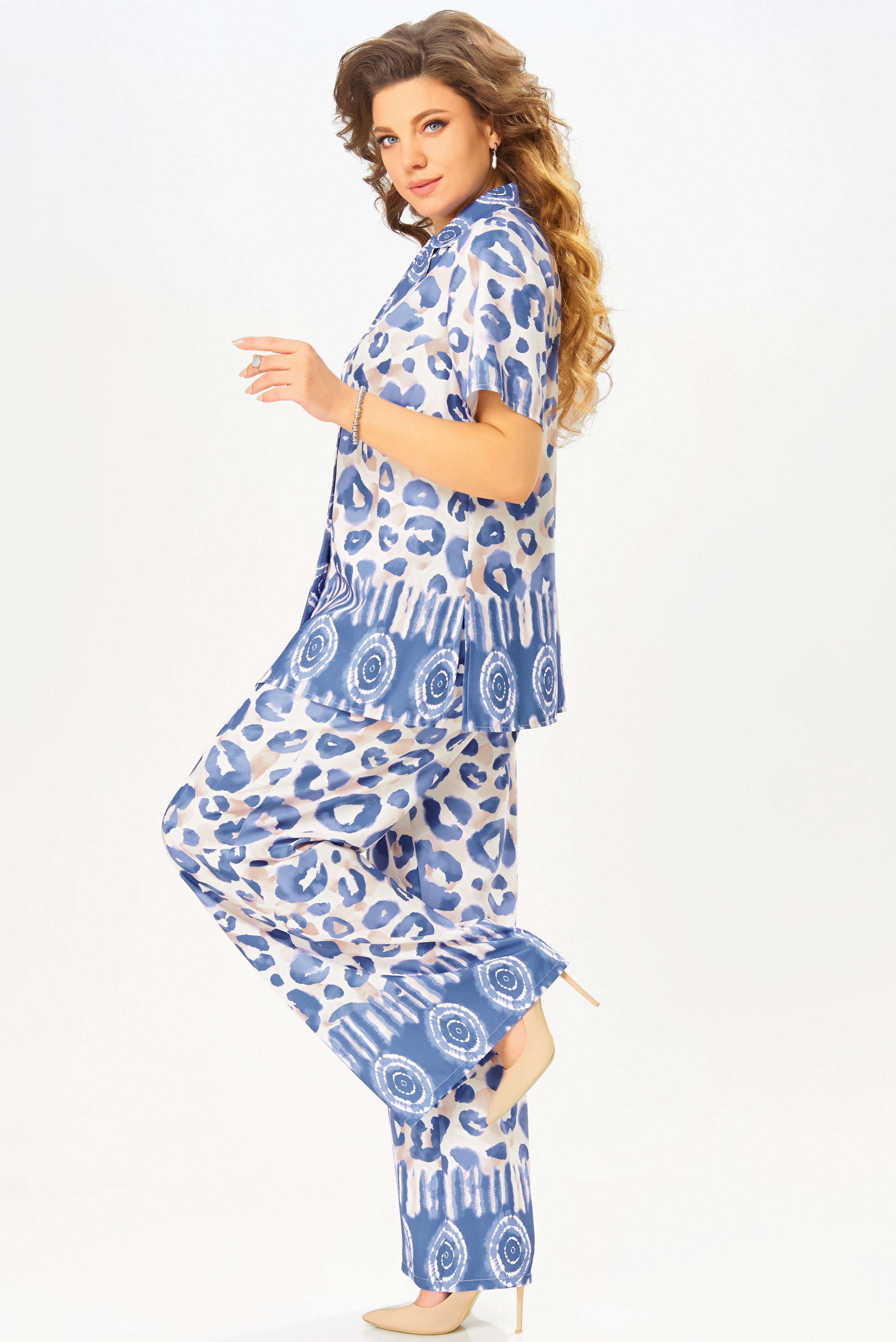 Комплект женский двойка "Изолина" состоит из блузки и брюк, выполнен и сатиновой ткани.