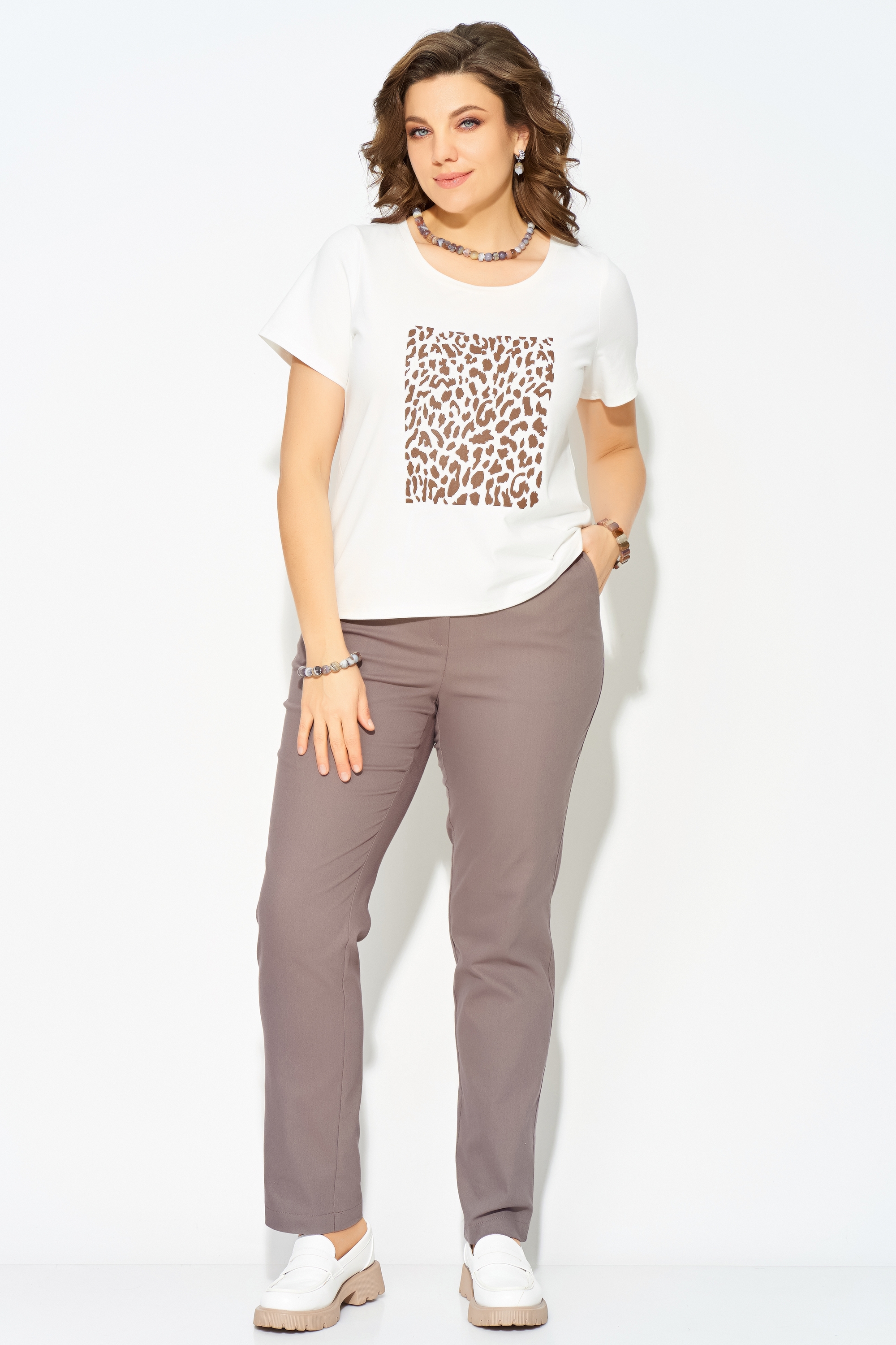 Джемпер в комплекте "Деяна" прилегающего силуэта. По груди вытачка. Горловина обработана планкой. На полочке печать "Леопард". Рукав втачной одношовный. Низ джемпера и рукава обработан распошивалкой.