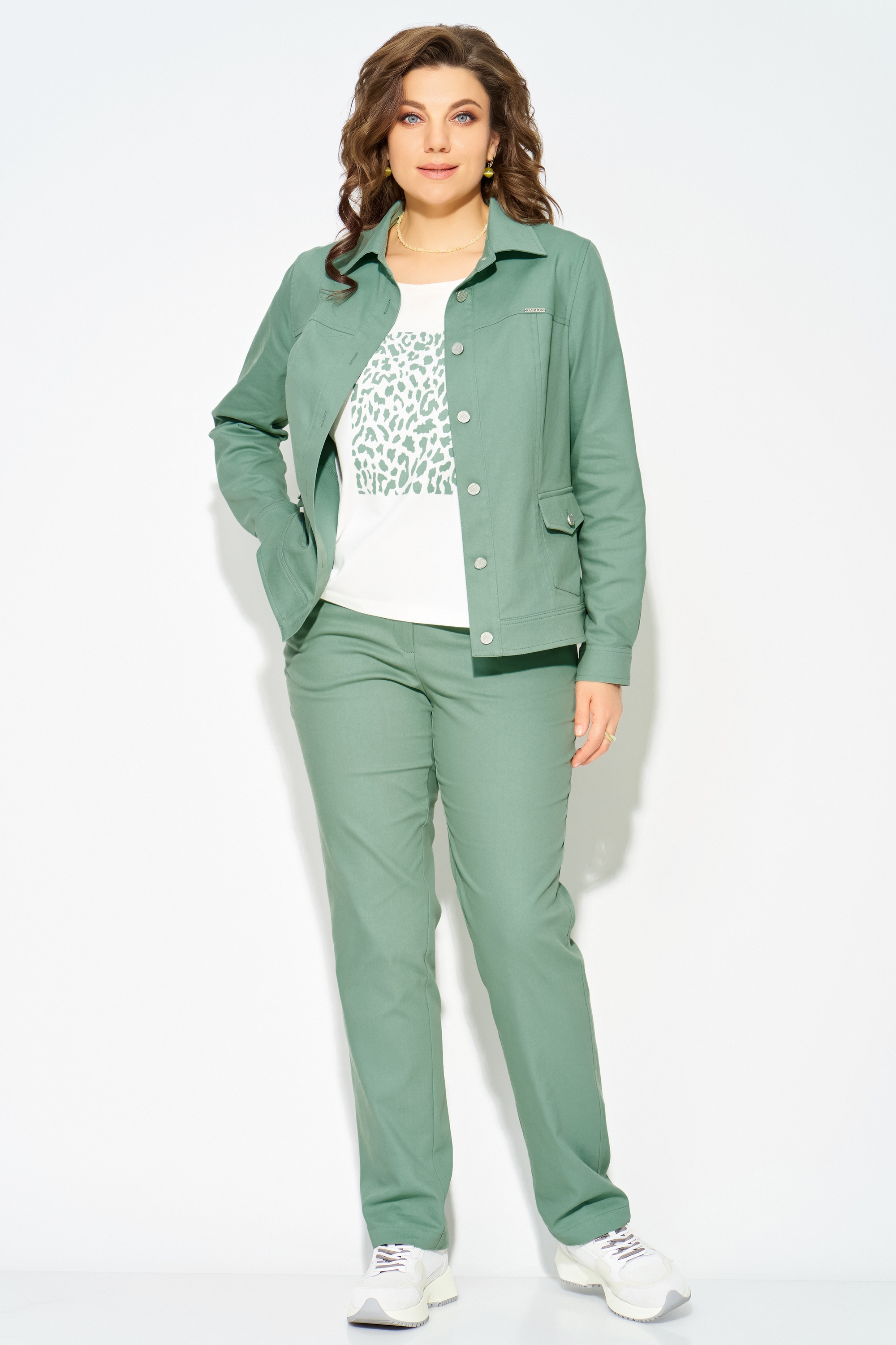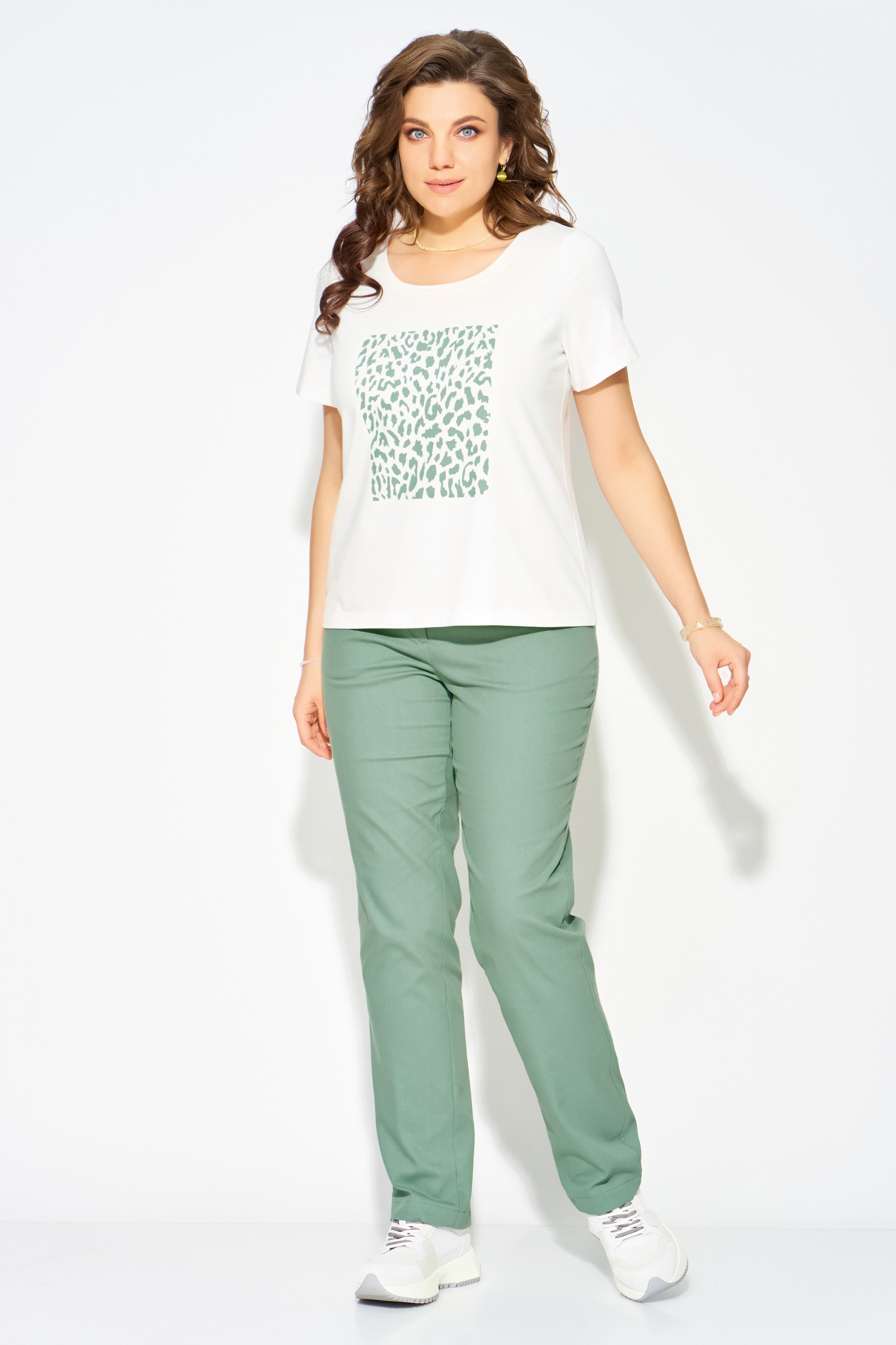 Джемпер в комплекте "Деяна" прилегающего силуэта. По груди вытачка. Горловина обработана планкой. На полочке печать "Леопард". Рукав втачной одношовный. Низ джемпера и рукава обработан распошивалкой.