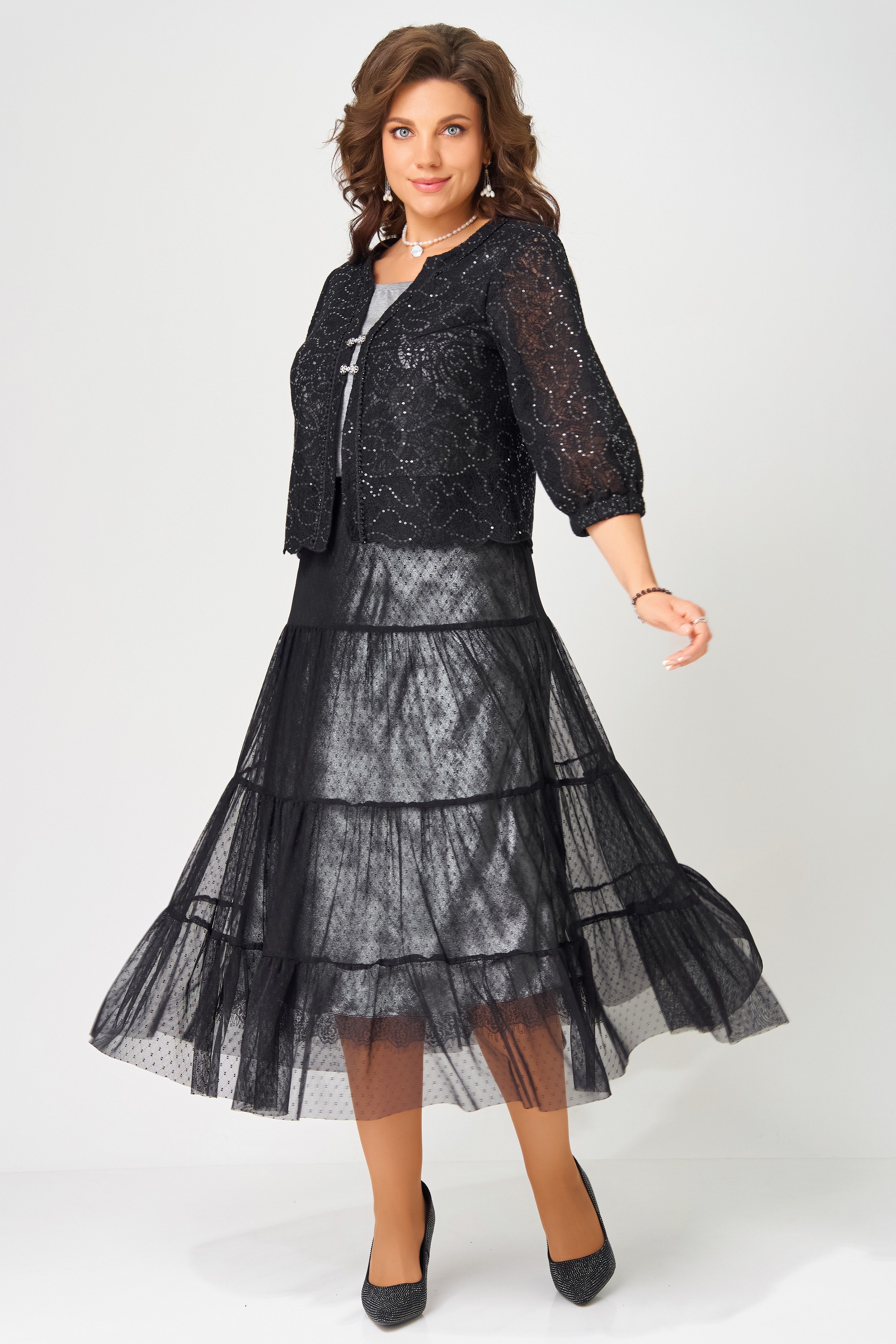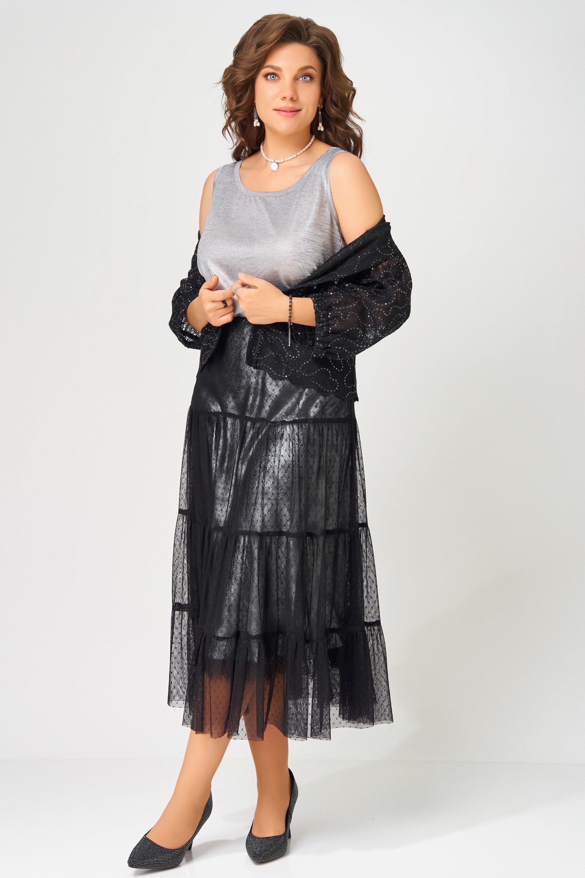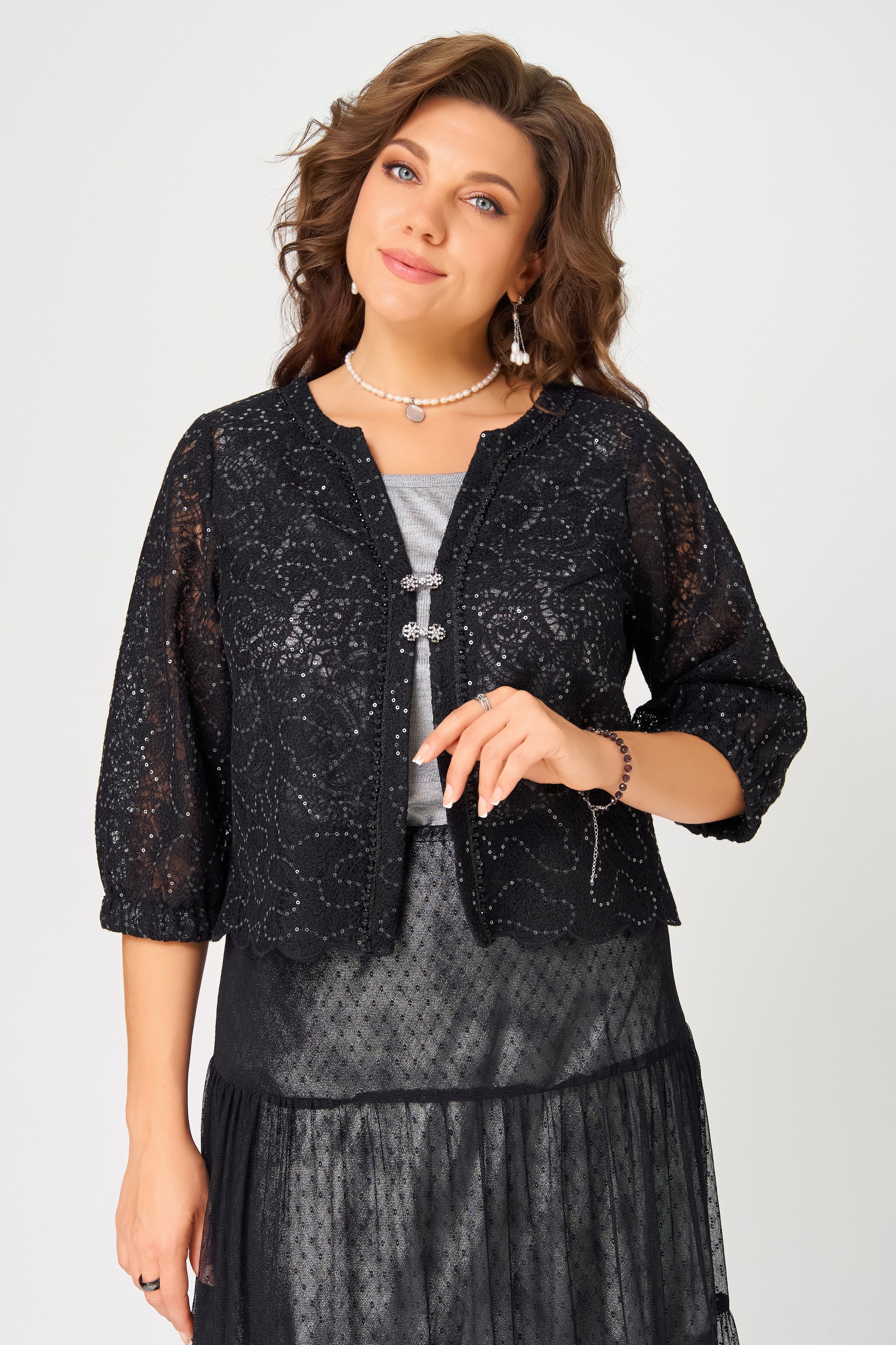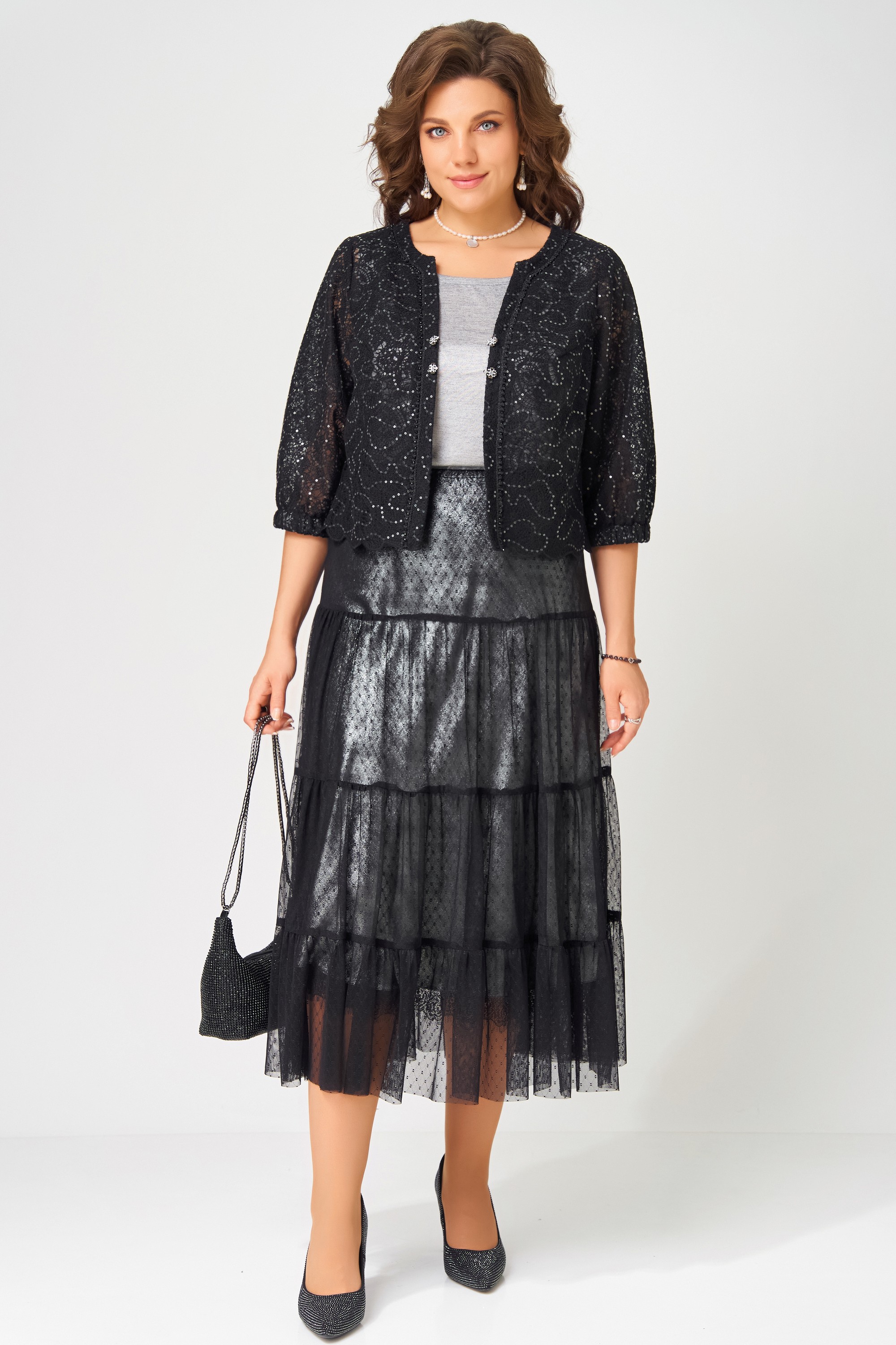 "Сафира" — ваш идеальный образ для торжеств. Лёгкое болеро, изящная юбка и лаконичный топ создают гармоничный ансамбль, в котором комфорт сочетается с элегантностью. Комплект подойдёт для любого праздника — от уютного семейного вечера до эффектного выхода.