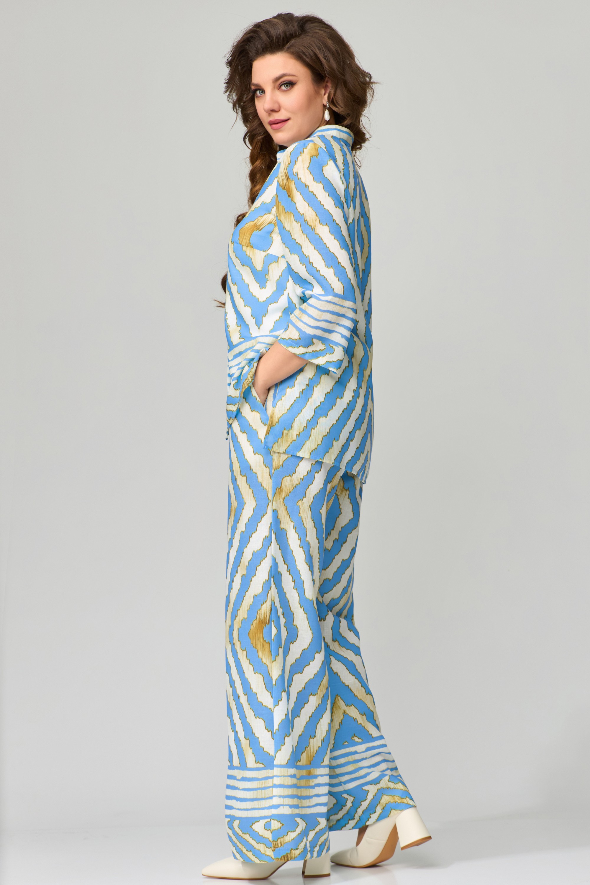 - Ткань костюм: "Лен ромбы", блузка трикотаж "Кулирка"