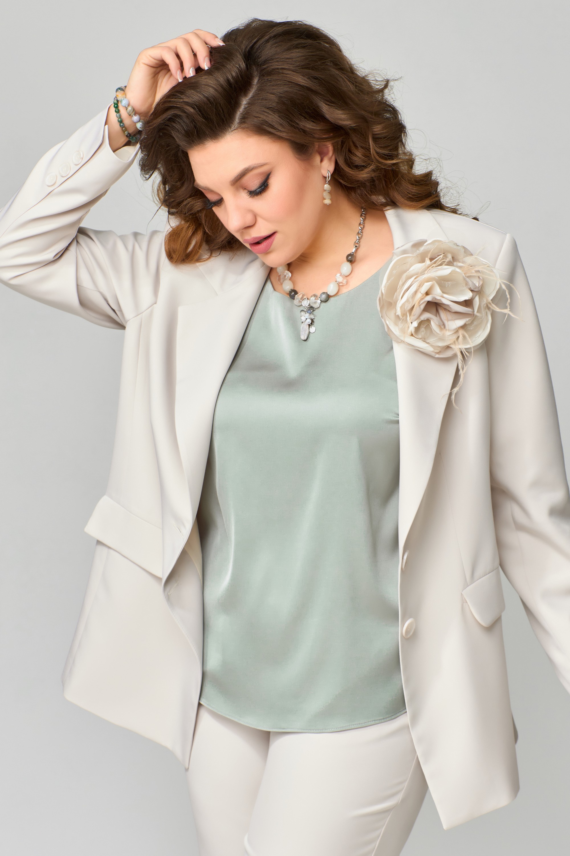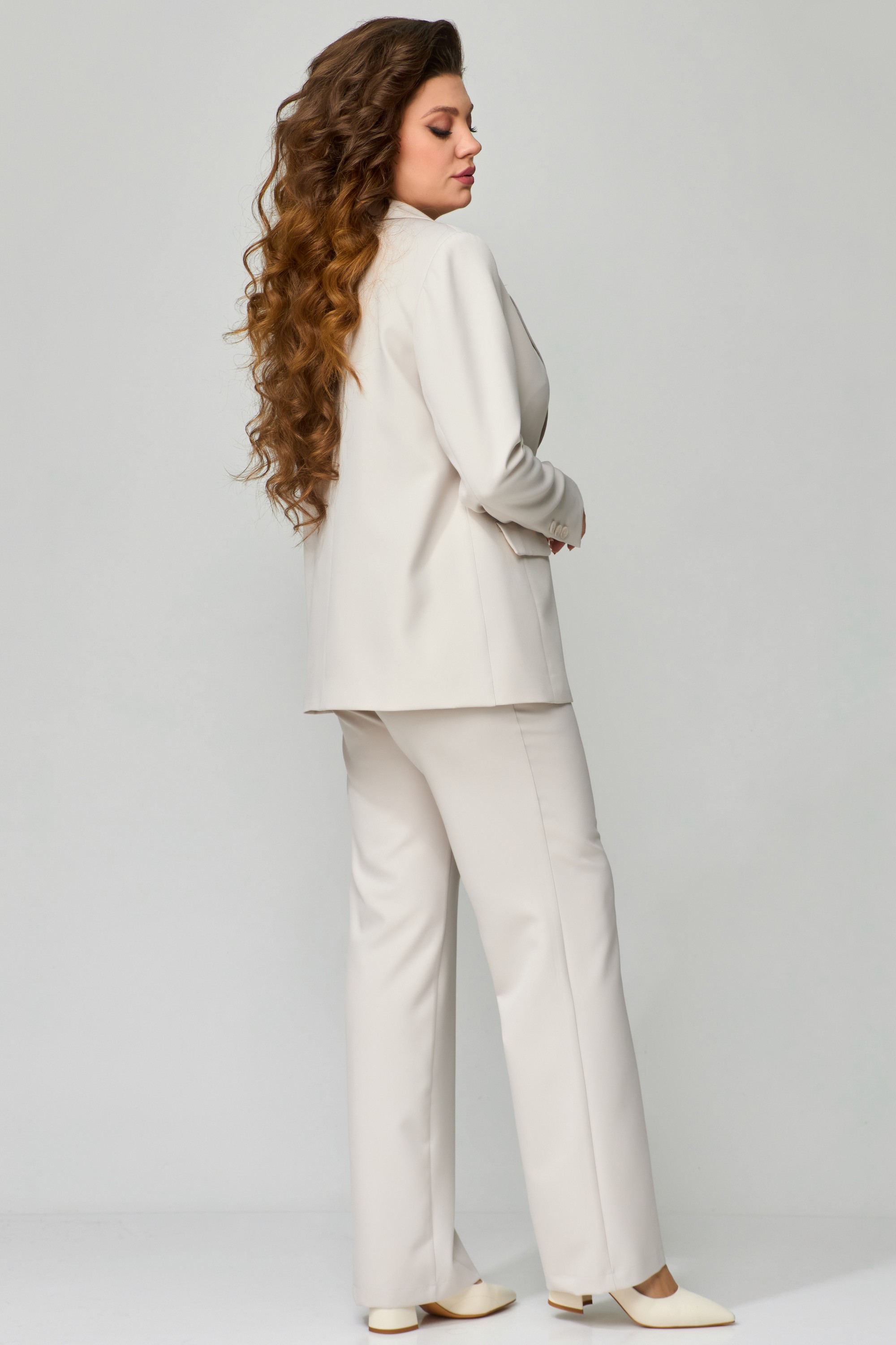 - Состав костюм: 70% полиэстер, 30% вискоза; блузка: 95% искусственный шелк, 5% спандекс