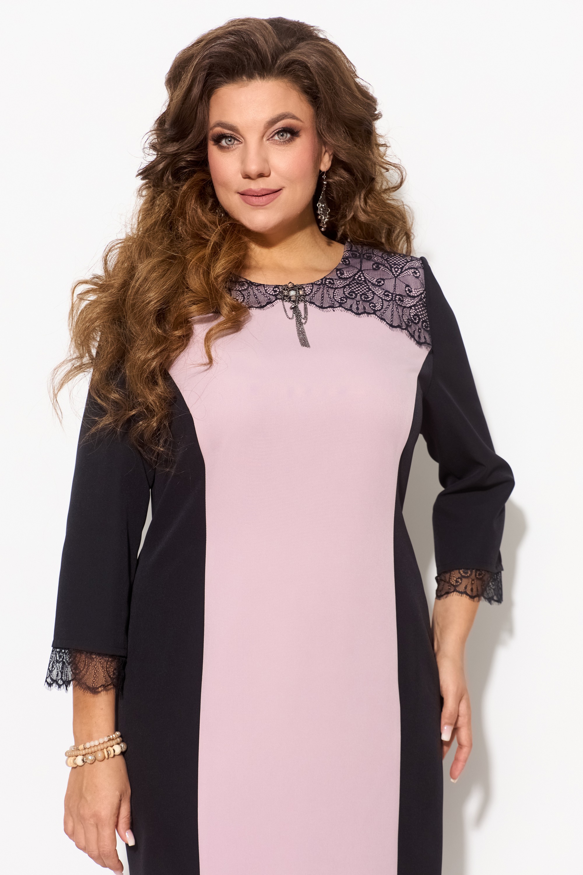 Платье нарядное "АПРАКСИЯ" прилегающего силуэта. По полочке и спинке рельефы, на спинке застежка на потайную молнию, шлица. Рукав втачной, четвертной, по низу рукава отделка - кружево. На полке отлитная кокетка из кружева. Горловина обработана обтачкой. Низ платья подшит потайным швом в подгибку. Украшение - брошь на полке.
