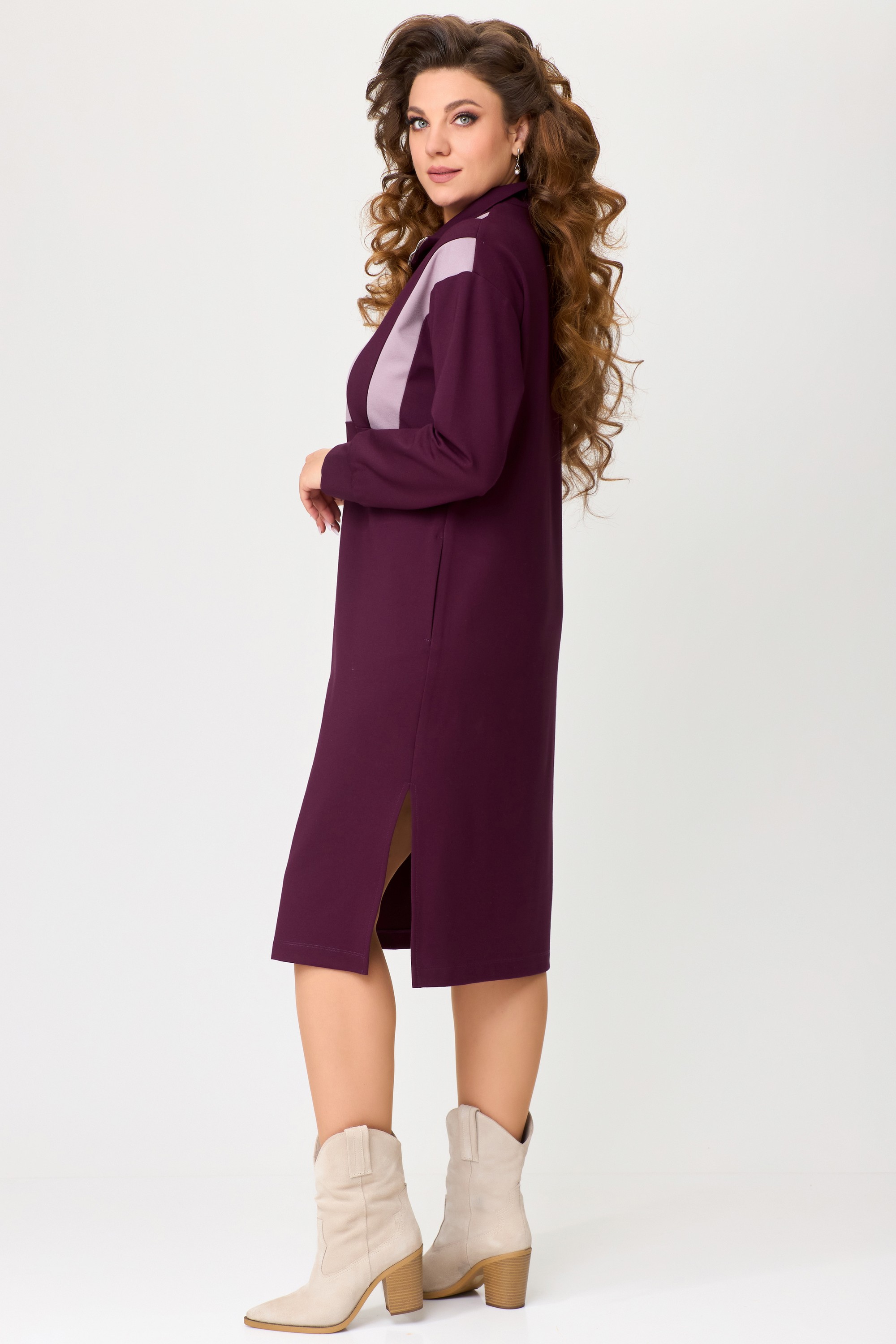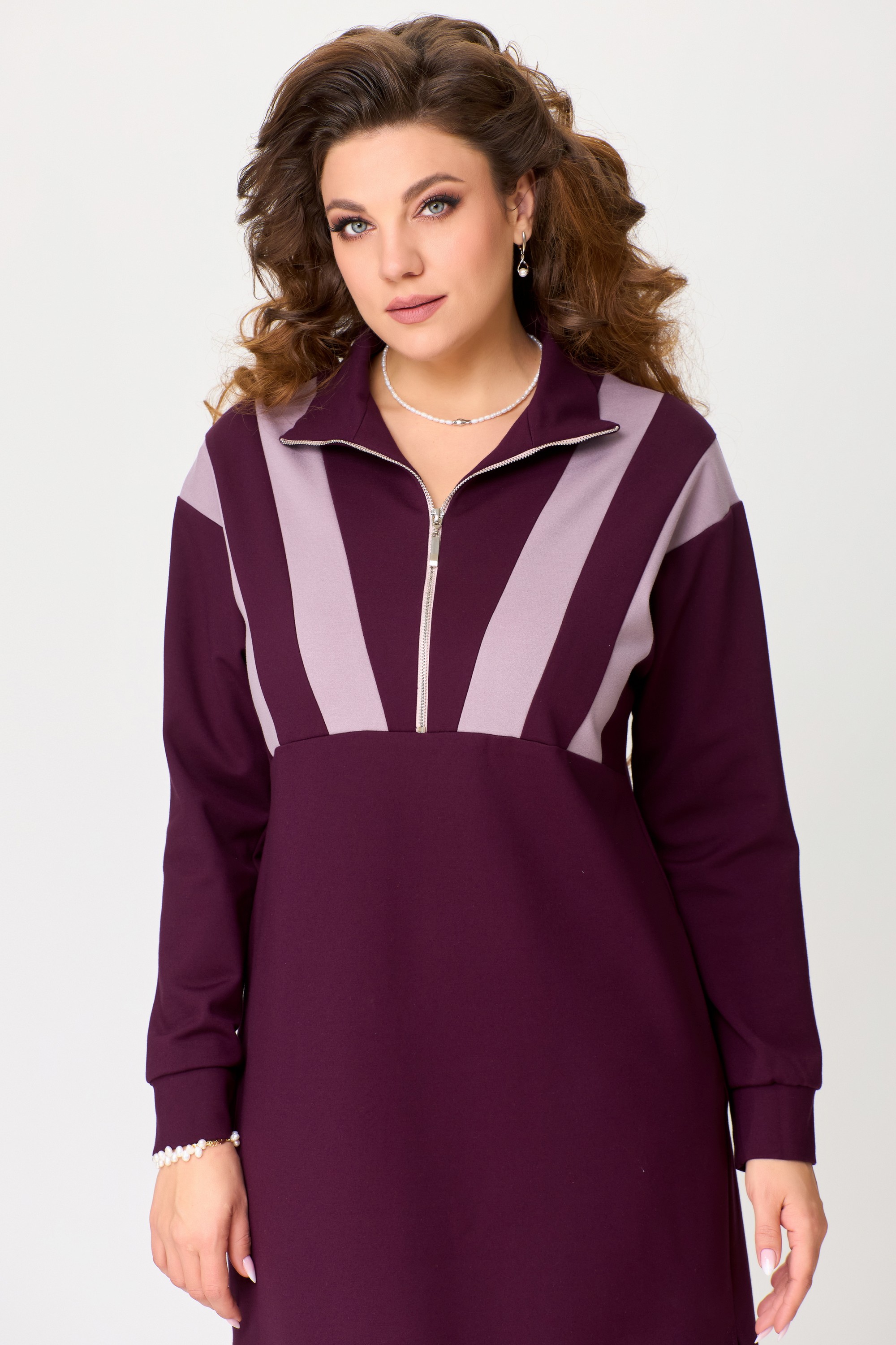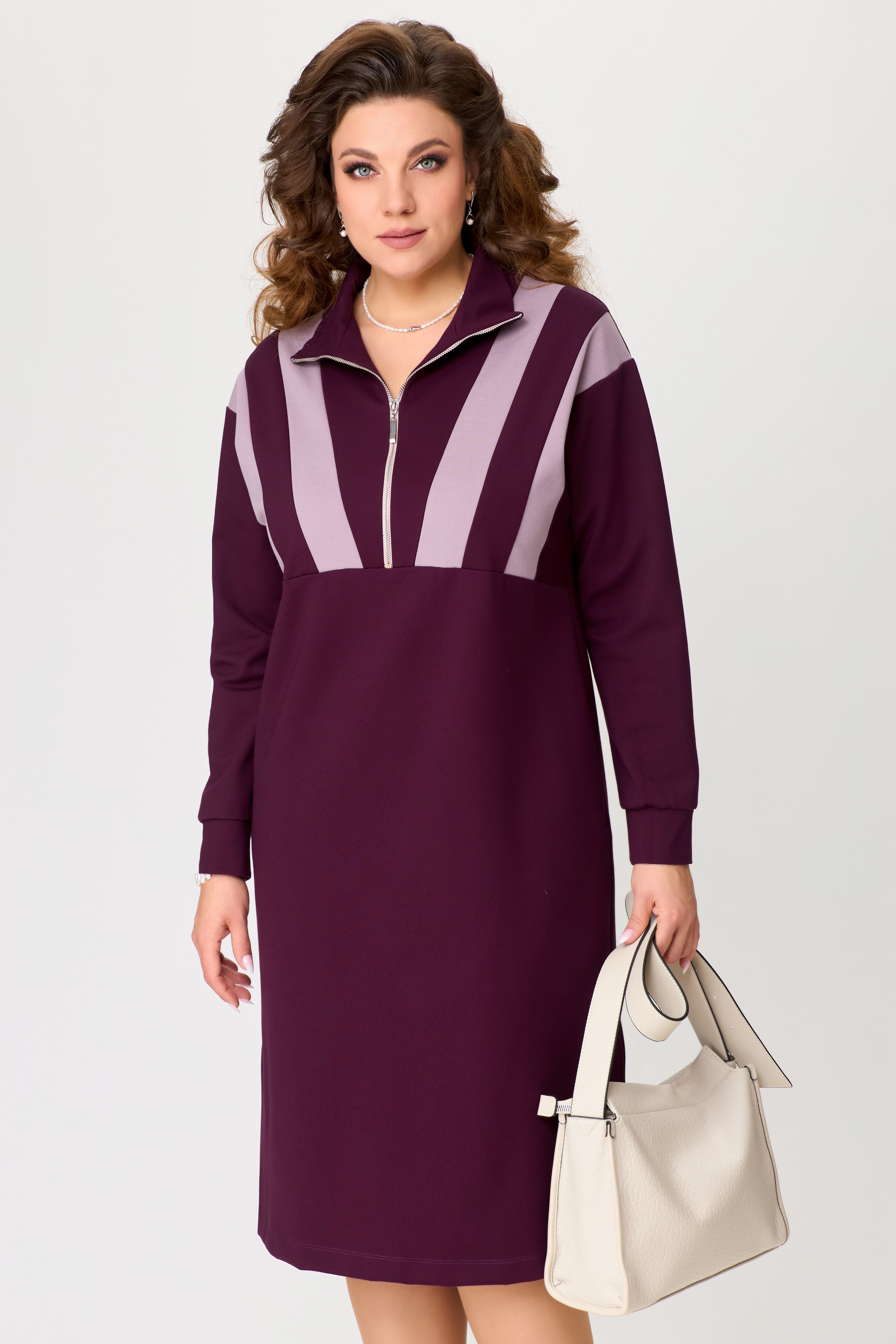 Женское трикотажное платье "Ванесса" выполнено из высококачественного турецкого трикотажного полотна. Ткань не скатывается, очень практичная в носке, мягкая и эластичная. Платье из трикотажа имеет хороший стрейч, что делает очень удобным и стильным в спорт-шик стиле. Платье прямого силуэта, со спущенным рукавом, по полочке нижу груди декоративный подрез. В платье застежка на молнию и на груди декоративные трикотажные вставки. Воротник - стойка, по низу рукава манжет, в боковых швах разрезы, низ изделия обработан на распошивалку. Элегантное трикотажное платье отлично подойдет для выхода в город, на прогулку и для повседневной носки дома.