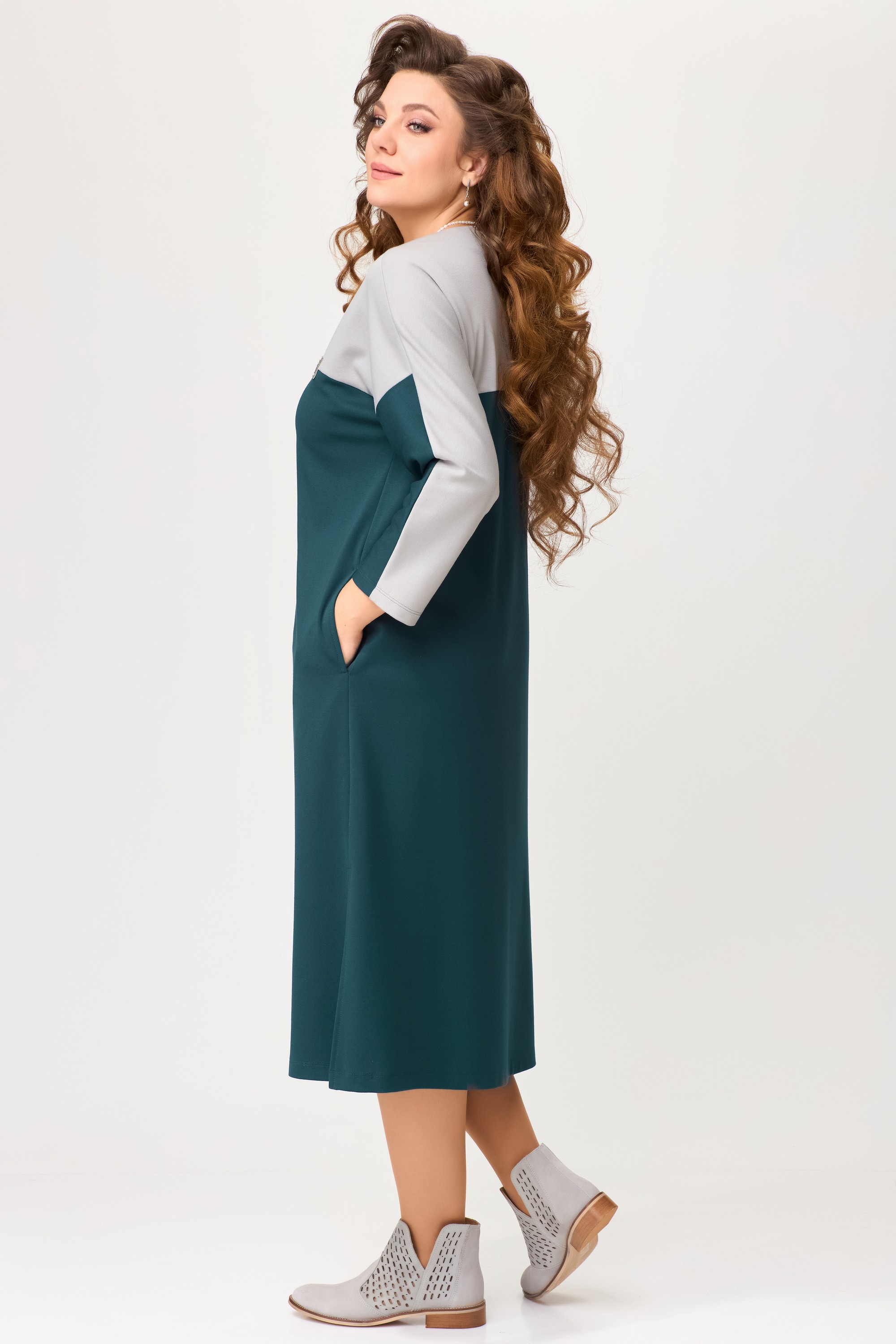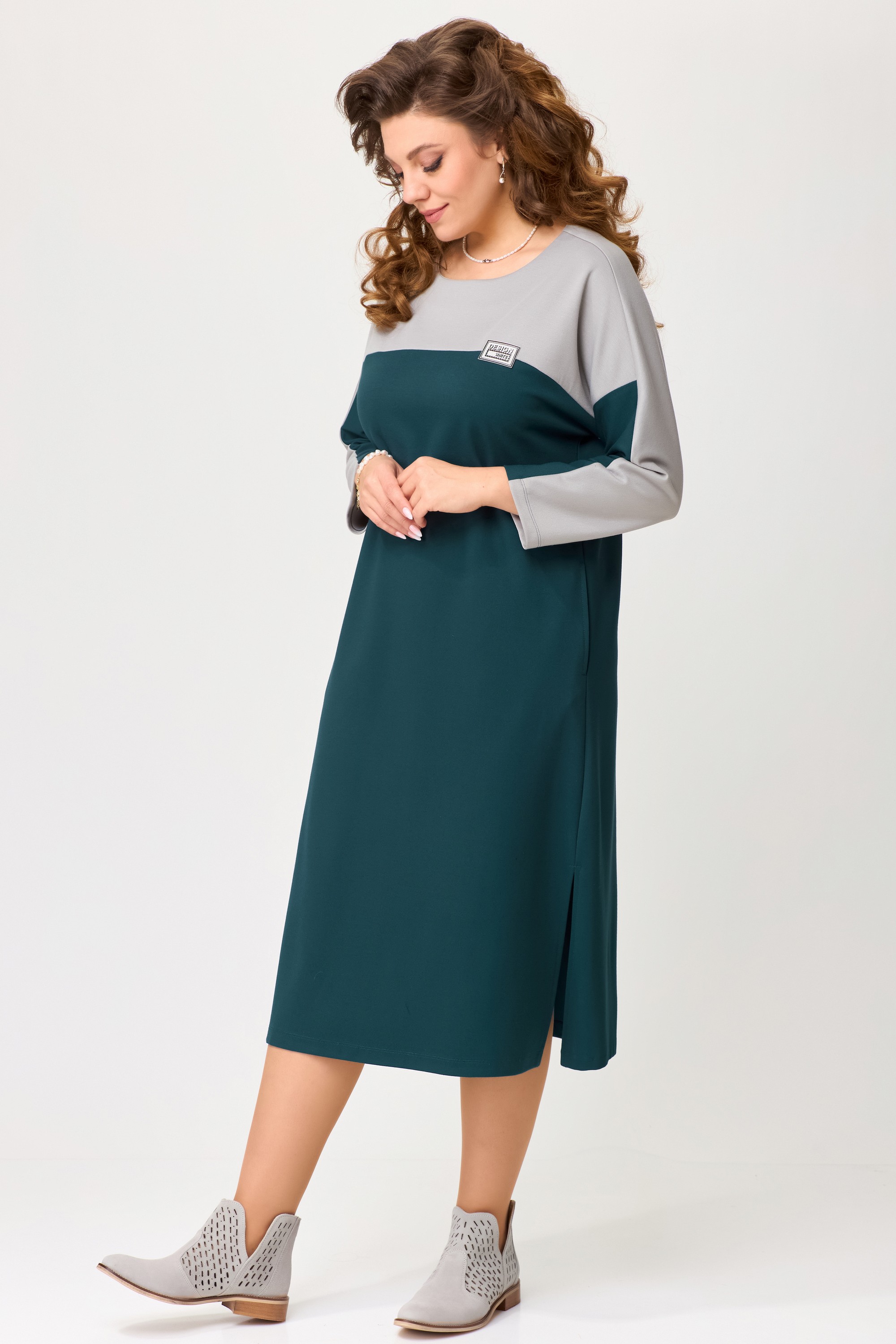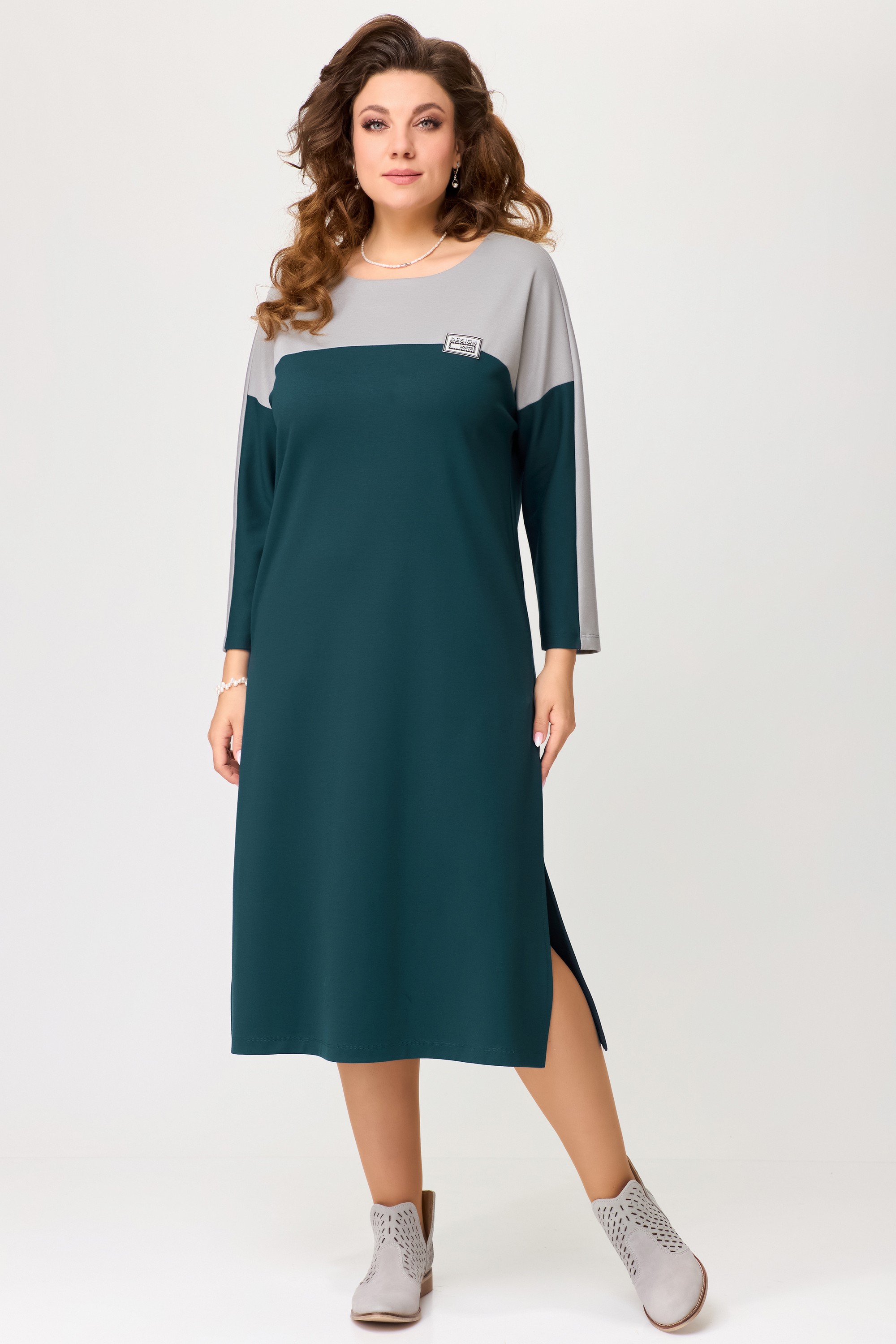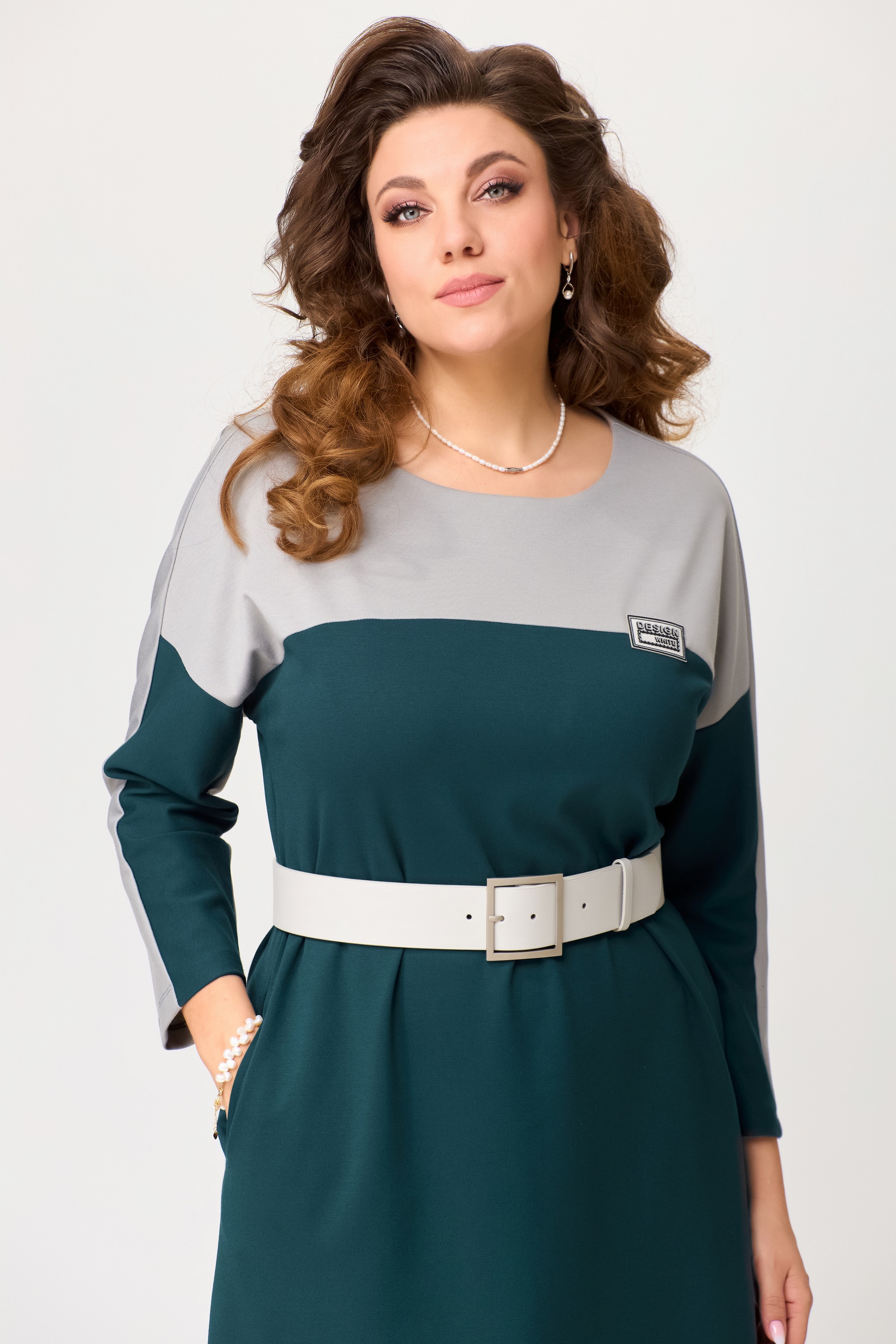 Женское трикотажное платье "Веста" выполнено из трикотажной ткани. Платье без подкладки, прямого силуэта со съемным поясом. По спинке и полочке - притачные кокетки. По центру рукава - шов. Горловина платья обработана обтачкой, на плочке пришита декоративная нашивка, по бокам - разрезы. Низ рукава и низ платья обработаны распошивалкой.