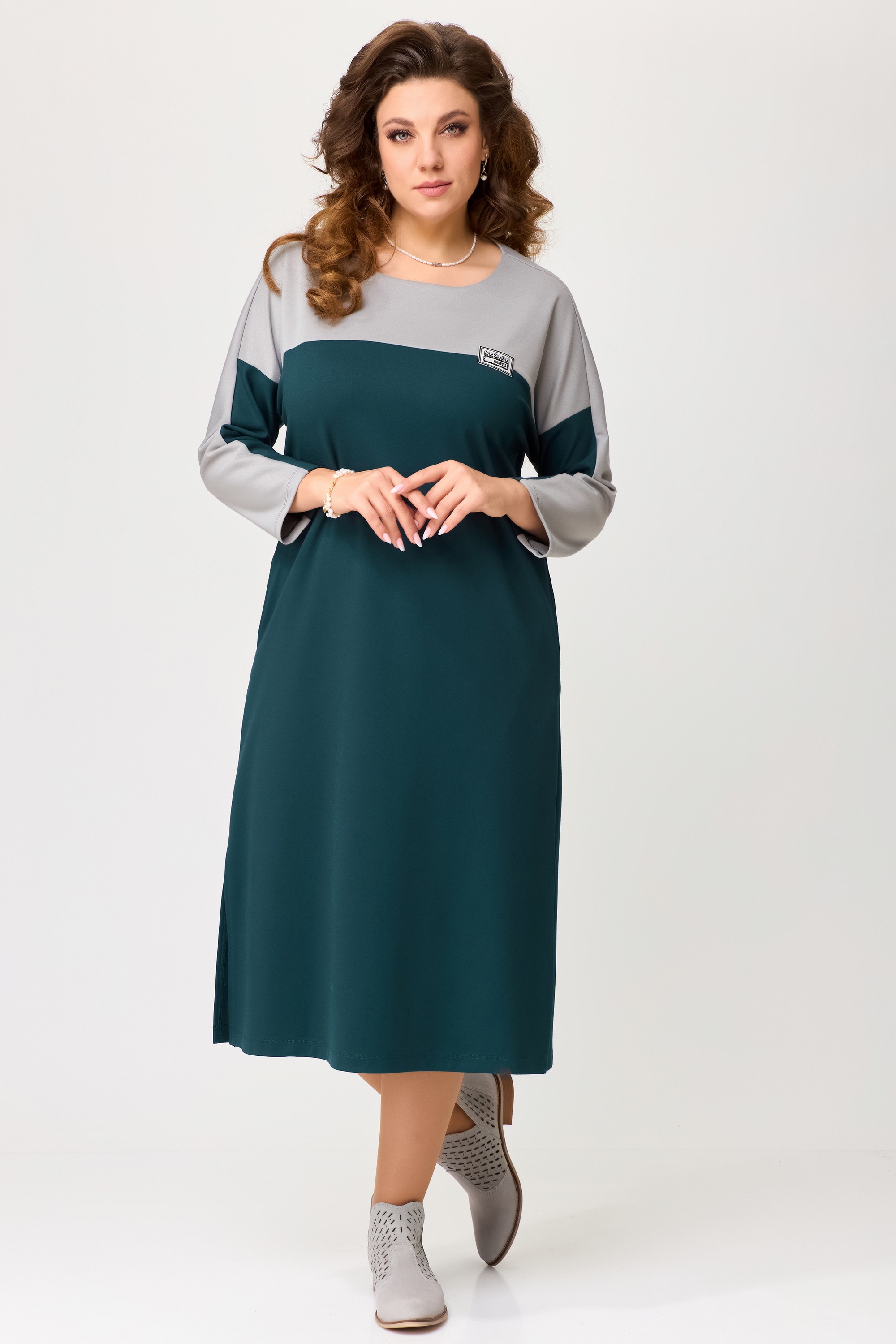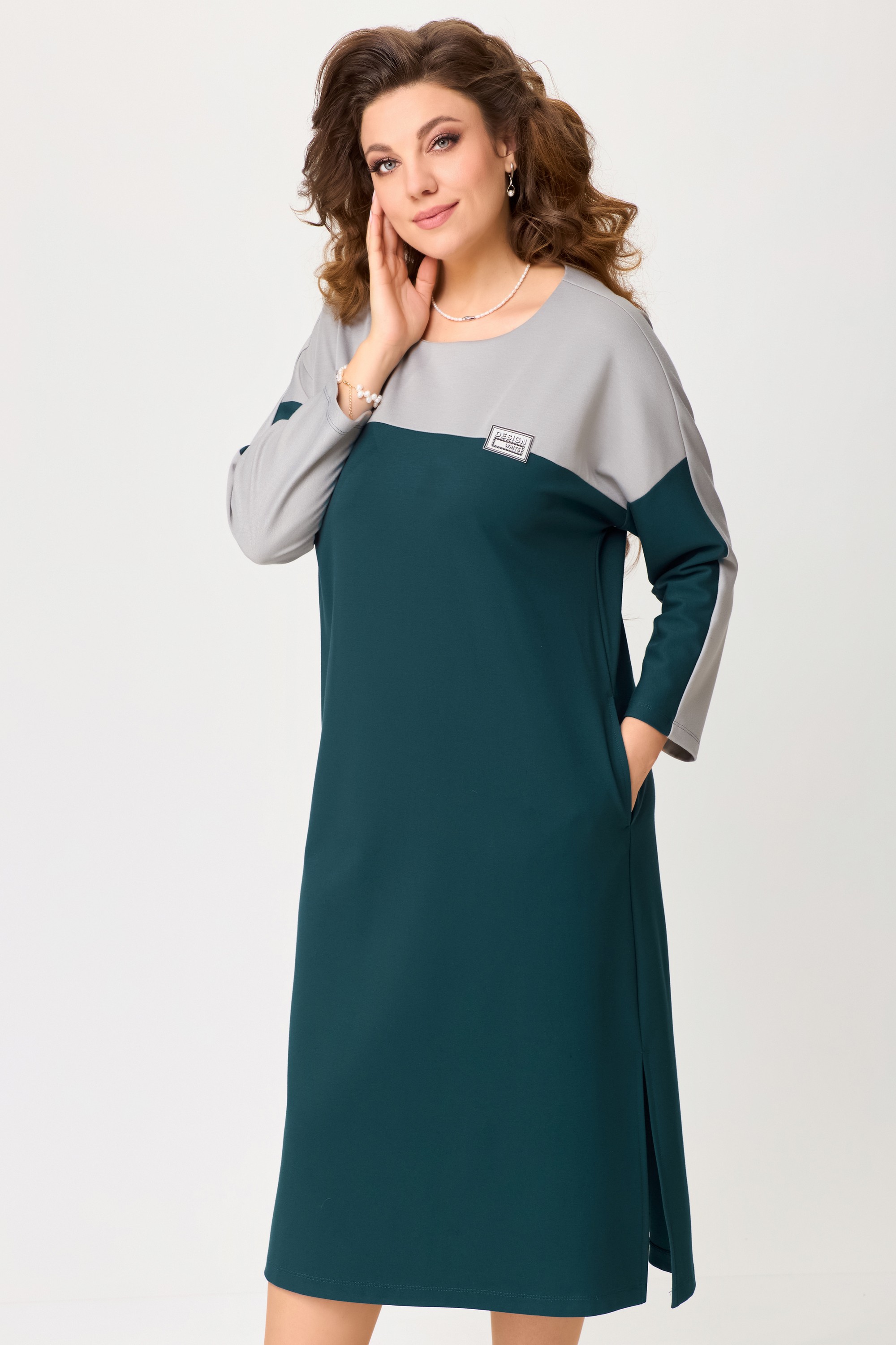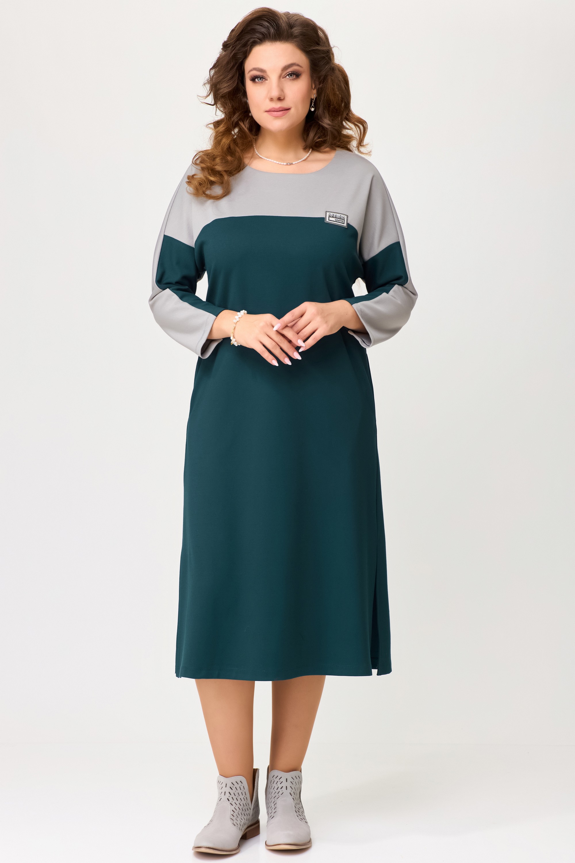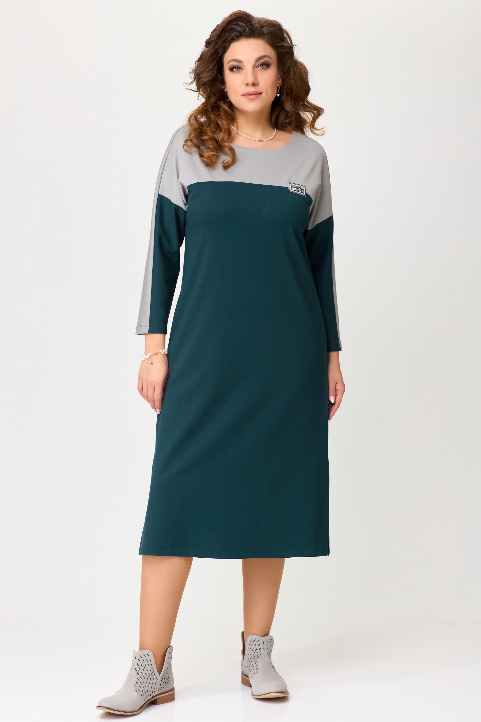 Женское трикотажное платье "Веста" выполнено из трикотажной ткани. Платье без подкладки, прямого силуэта со съемным поясом. По спинке и полочке - притачные кокетки. По центру рукава - шов. Горловина платья обработана обтачкой, на плочке пришита декоративная нашивка, по бокам - разрезы. Низ рукава и низ платья обработаны распошивалкой.