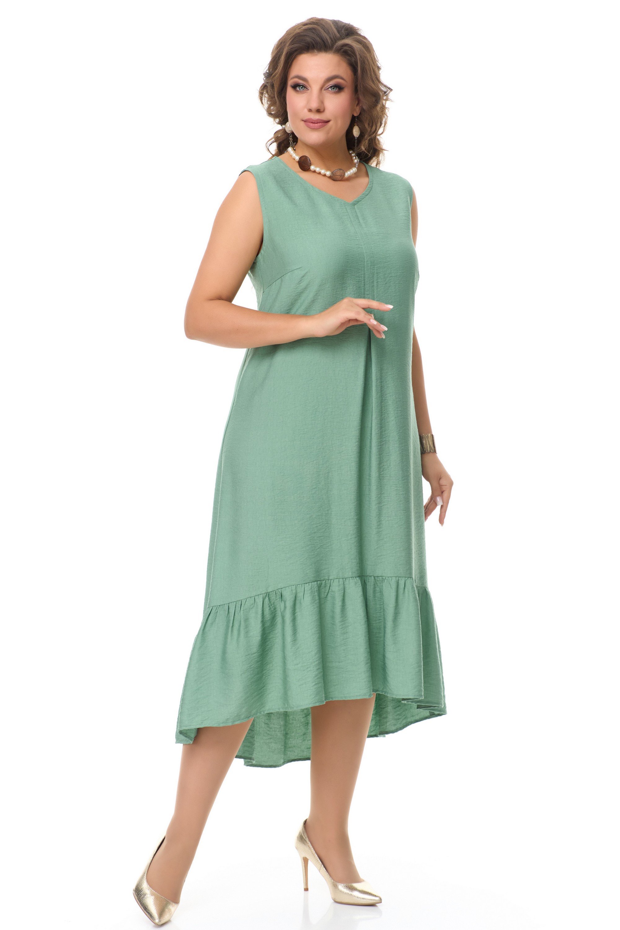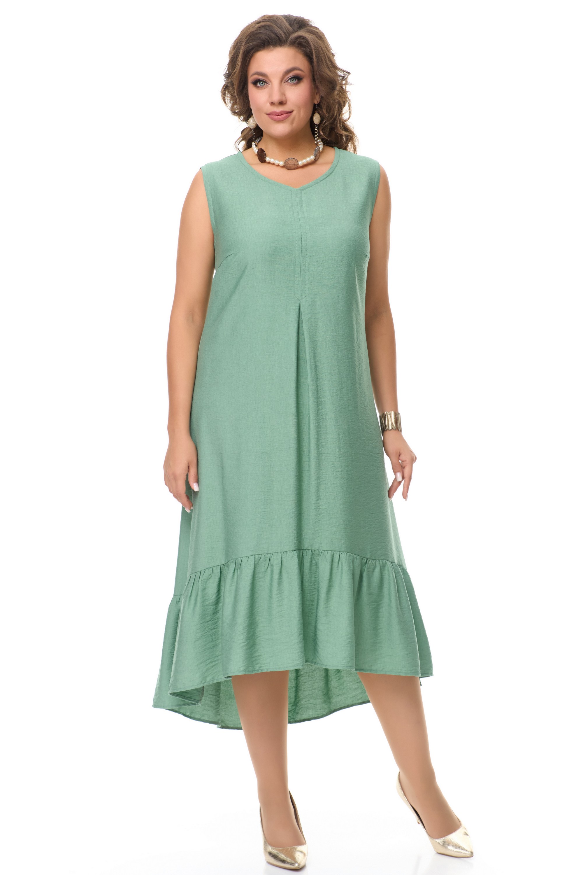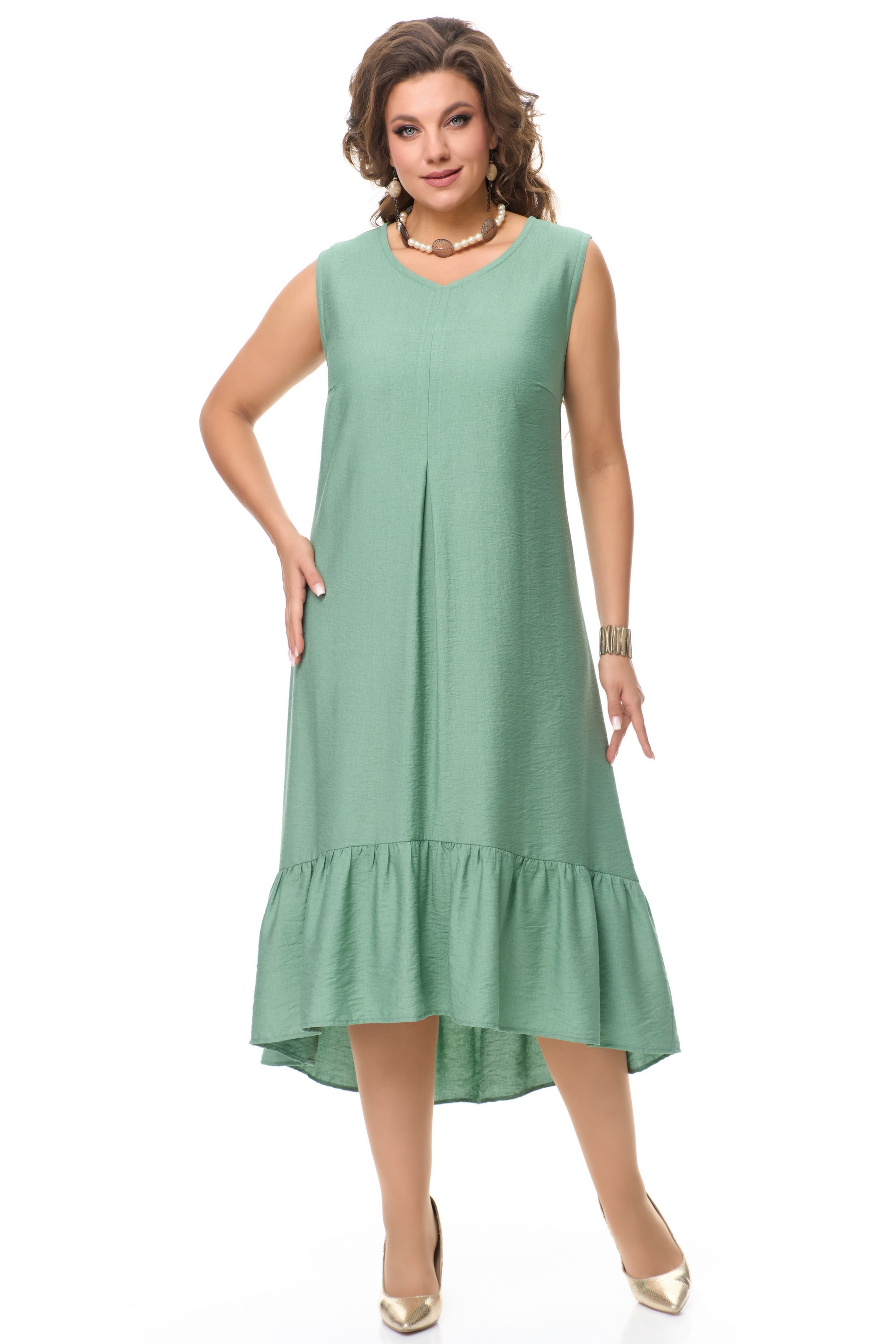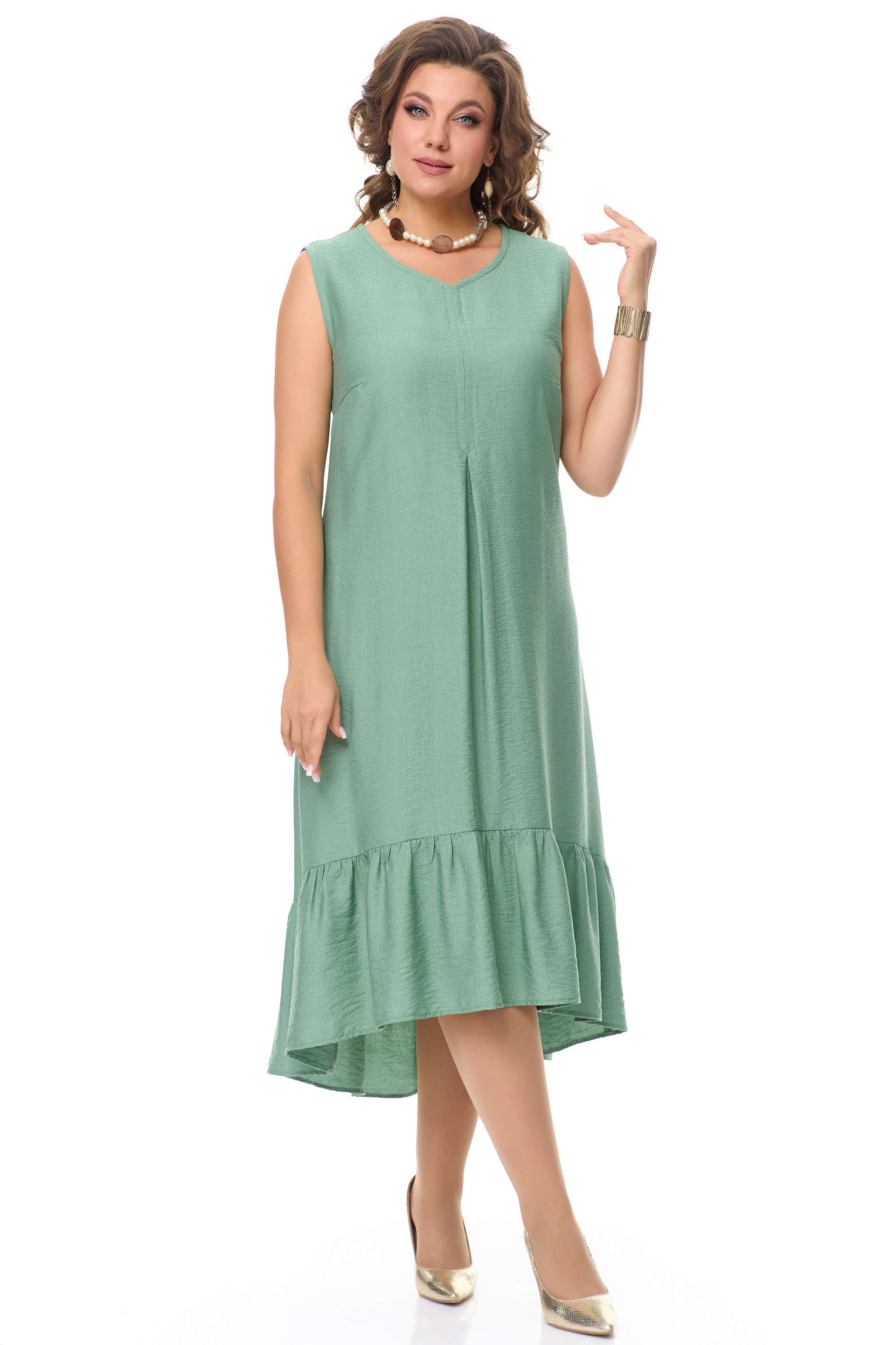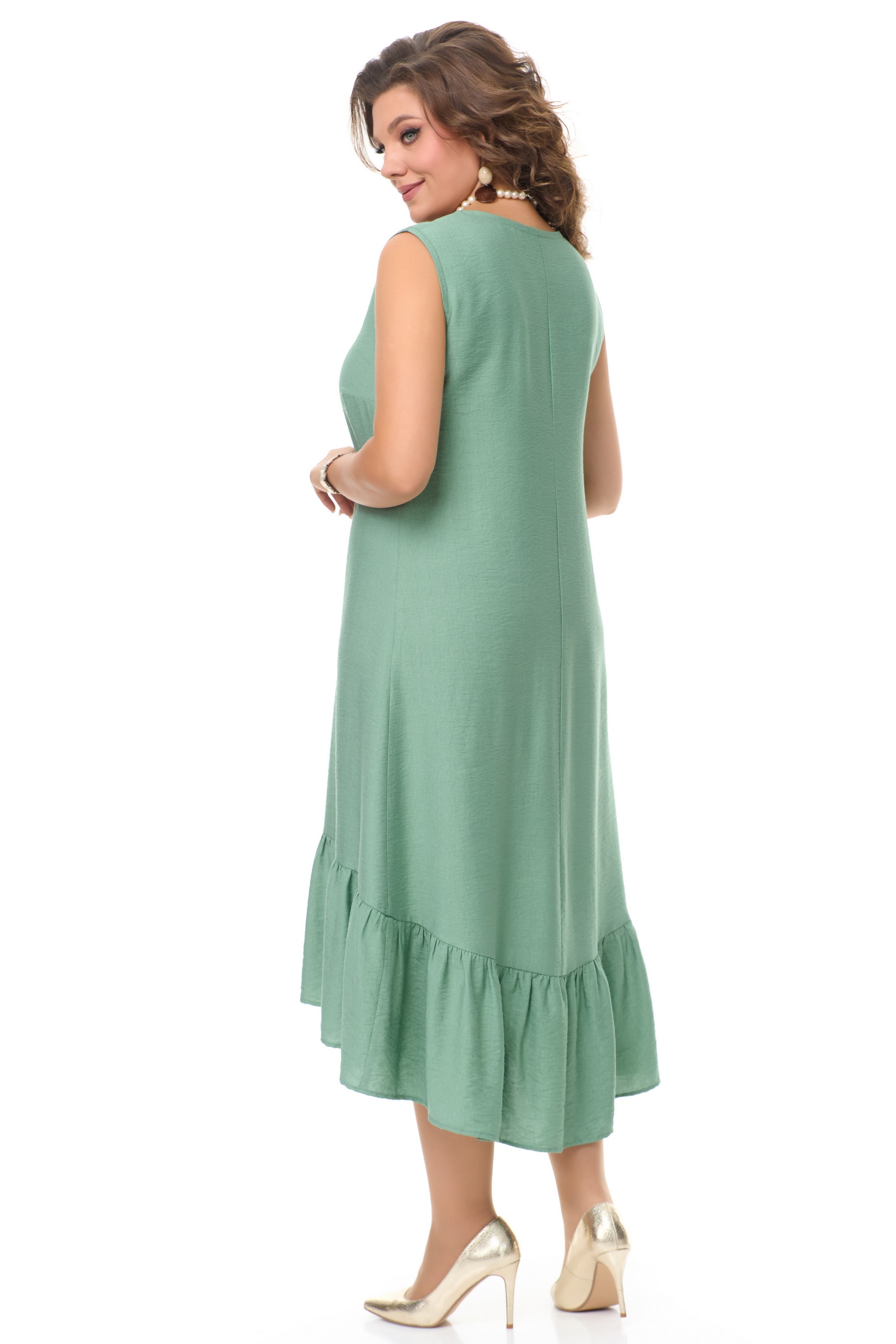 Сарафан "Сения" изготовлен из легкой текстильной ткани жатка, расклешенный к низу с воланом, собранным на сборку. В женском сарафане по центру полки встречная складка. В сарафане проймы и горловина обработаны обтачкой и по краю отделочная строчка.