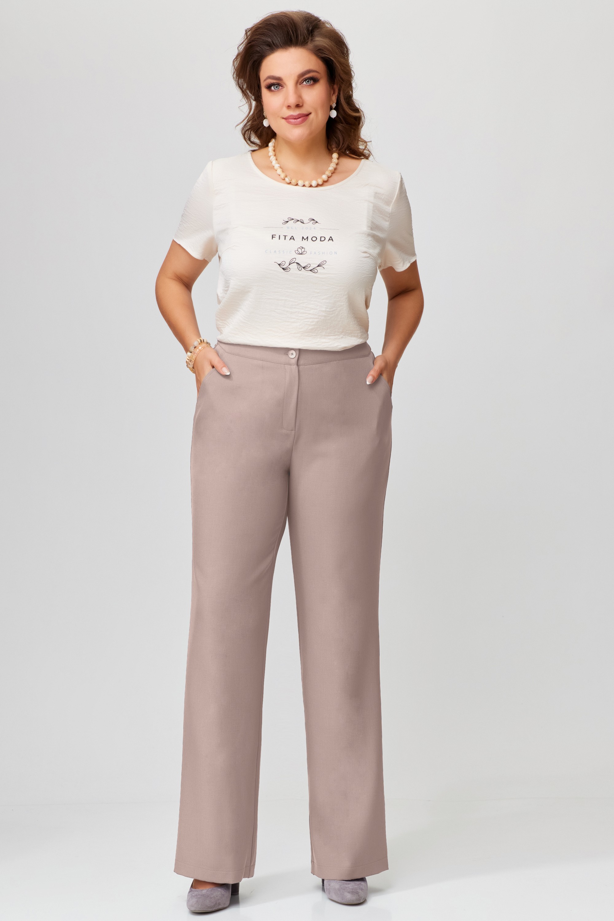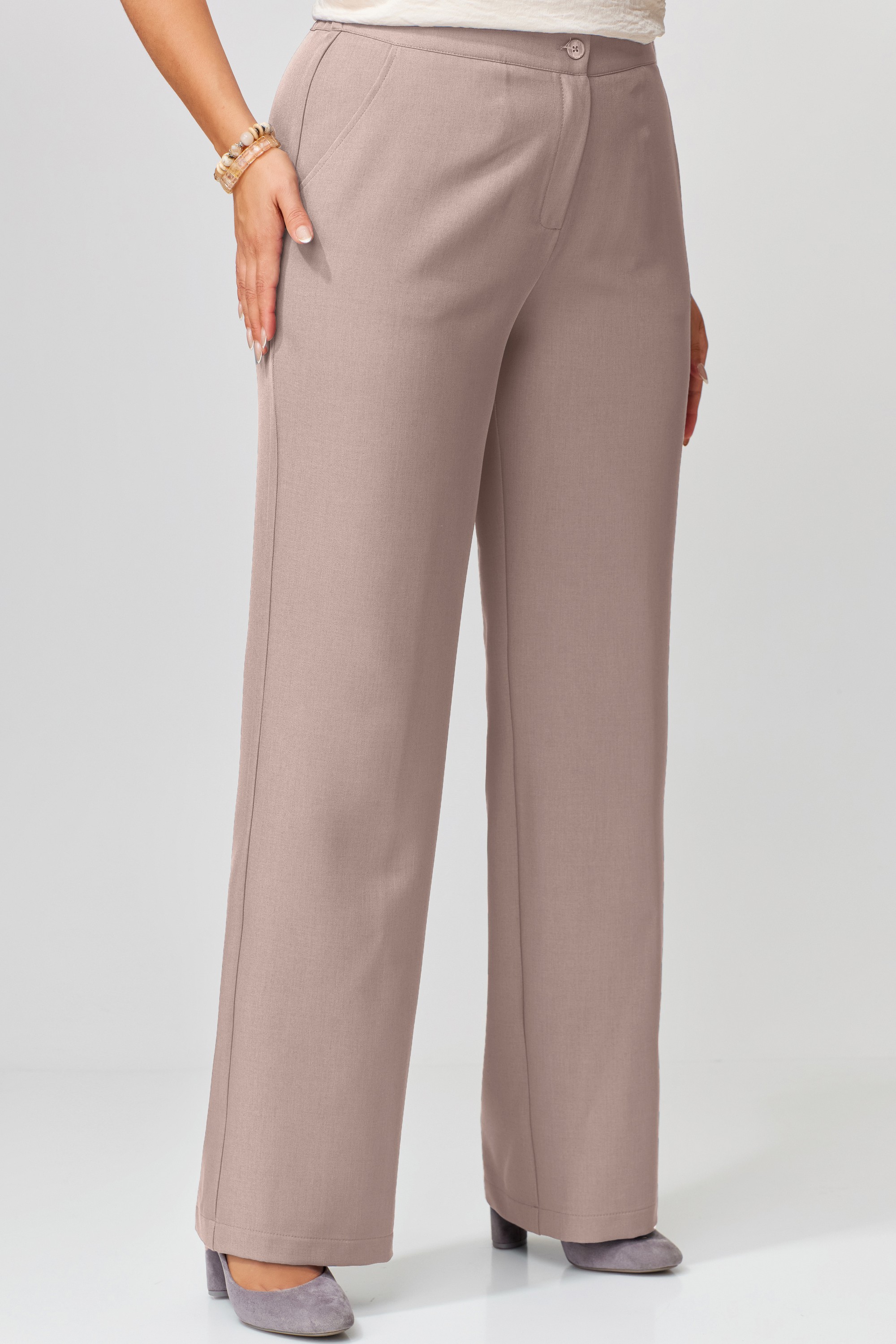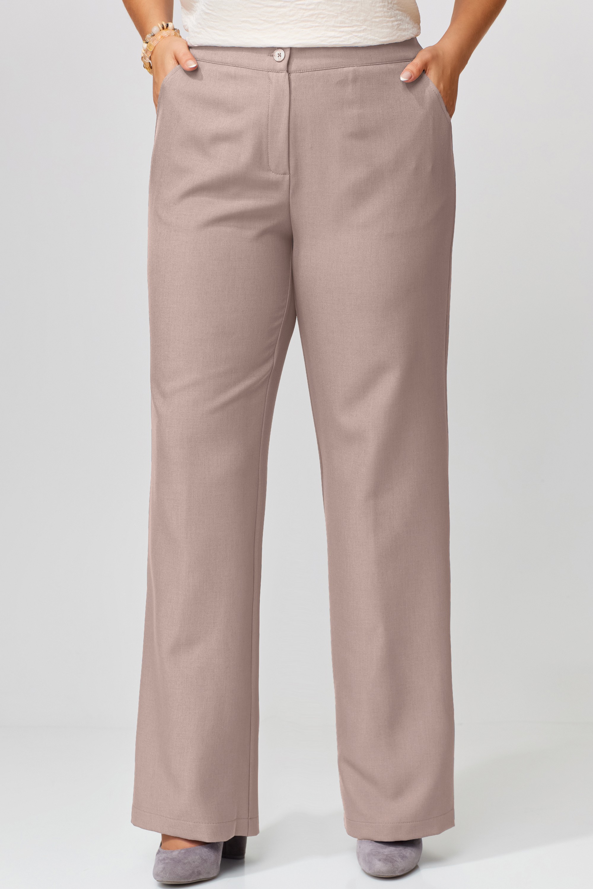 Прямой силуэт брюк — это универсальность, которая не теряет шарма. Ткань струится по ногам, подчёркивая линию фигуры, не сковывая движения. Пояс с эластичной вставкой по спинке — забота о комфорте, скрытая за элегантной формой. Карманы по переду — практичные и стильные, а потайная застёжка — как секрет, известный только вам. Обработка низа в подгибку завершает образ с безупречной аккуратностью.<br />