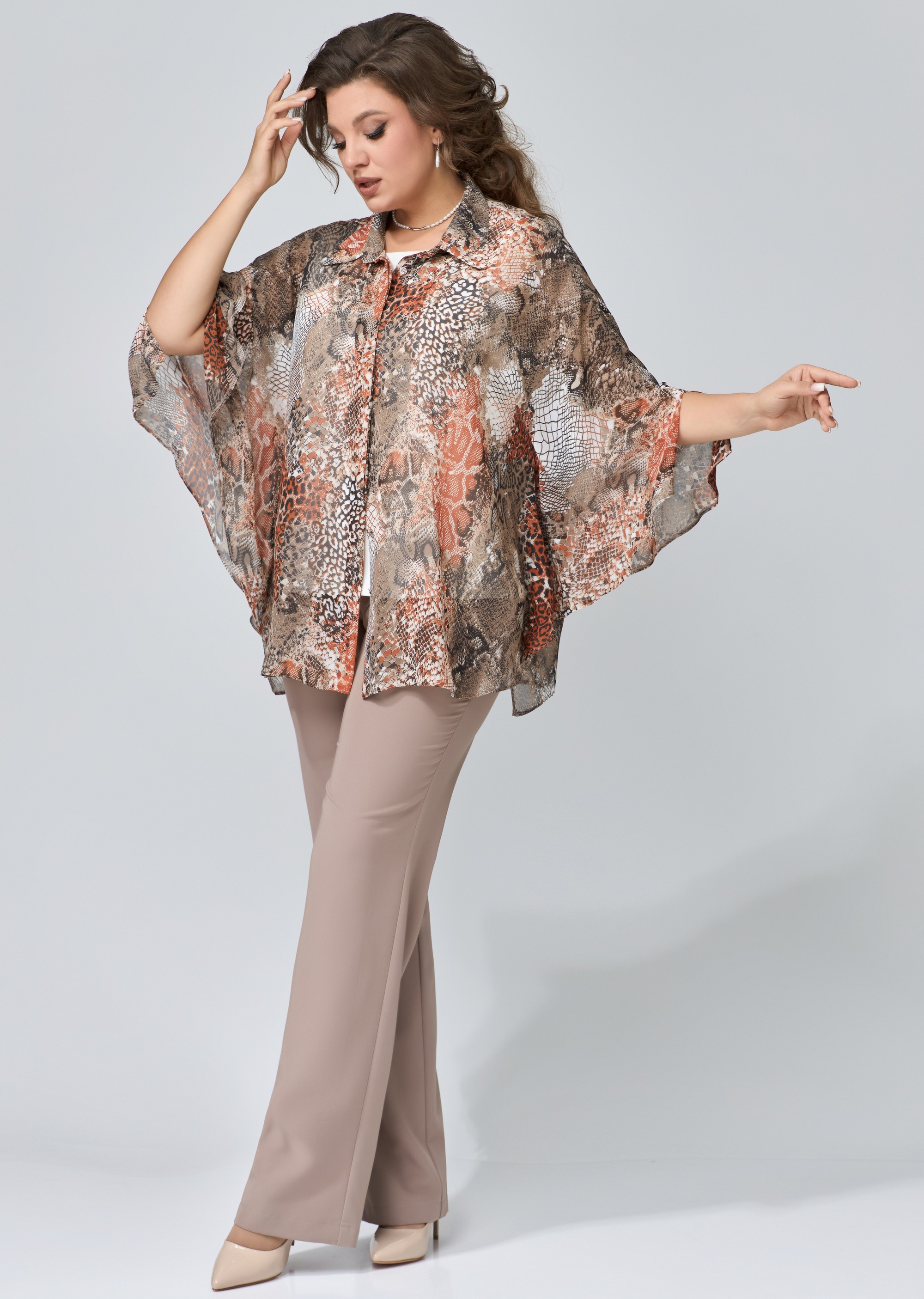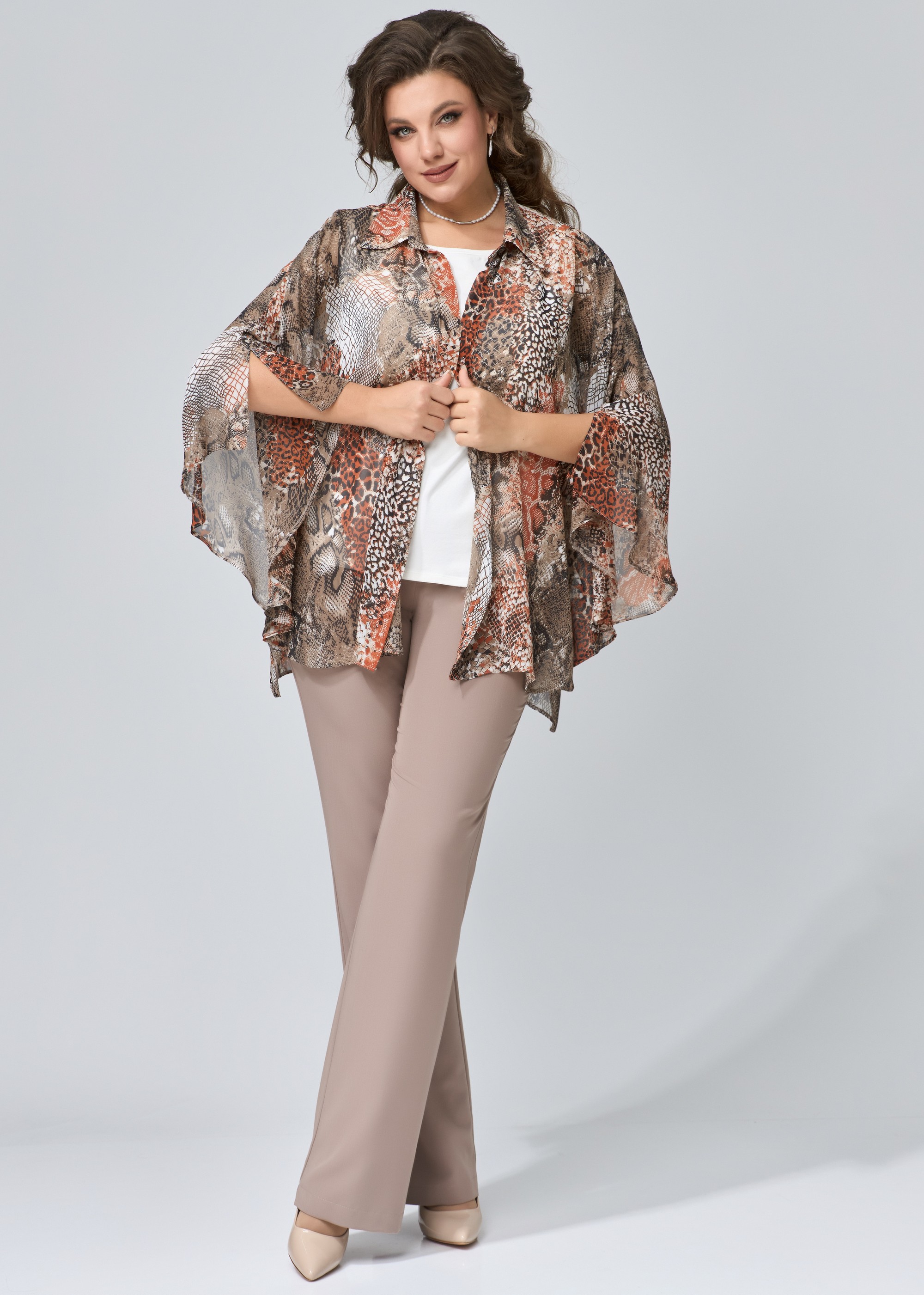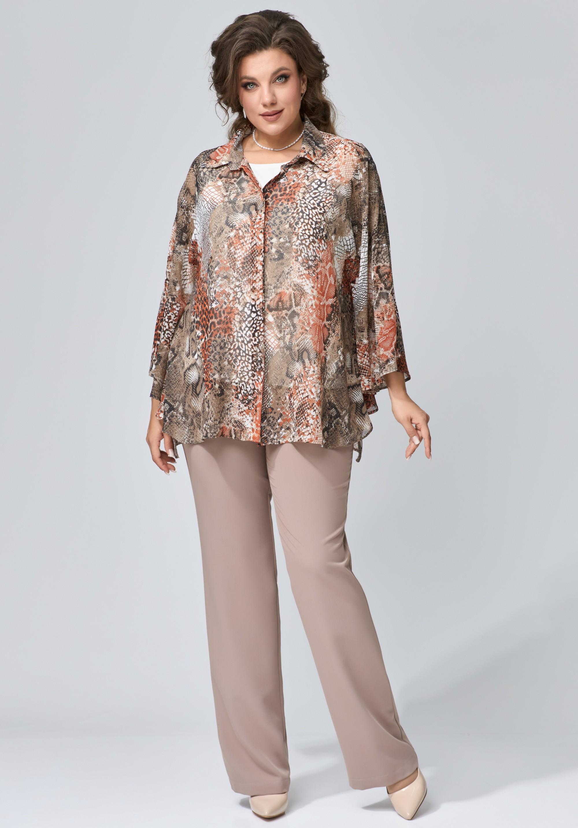 Прямой силуэт брюк — это универсальность, которая не теряет шарма. Ткань струится по ногам, подчёркивая линию фигуры, не сковывая движения. Пояс с эластичной вставкой по спинке — забота о комфорте, скрытая за элегантной формой. Карманы по переду — практичные и стильные, а потайная застёжка — как секрет, известный только вам. Обработка низа в подгибку завершает образ с безупречной аккуратностью.<br />