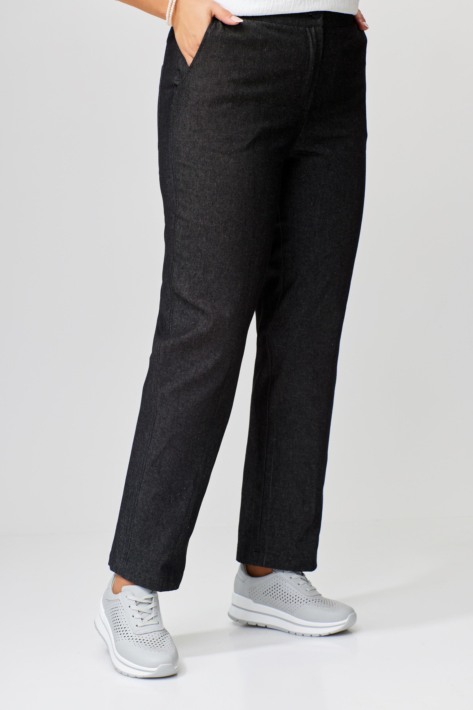 Прямой силуэт брюк — это универсальность, которая не теряет шарма. Ткань струится по ногам, подчёркивая линию фигуры, не сковывая движения. Пояс с эластичной вставкой по спинке — забота о комфорте, скрытая за элегантной формой. Карманы по переду — практичные и стильные, а потайная застёжка — как секрет, известный только вам. Обработка низа в подгибку завершает образ с безупречной аккуратностью.<br />