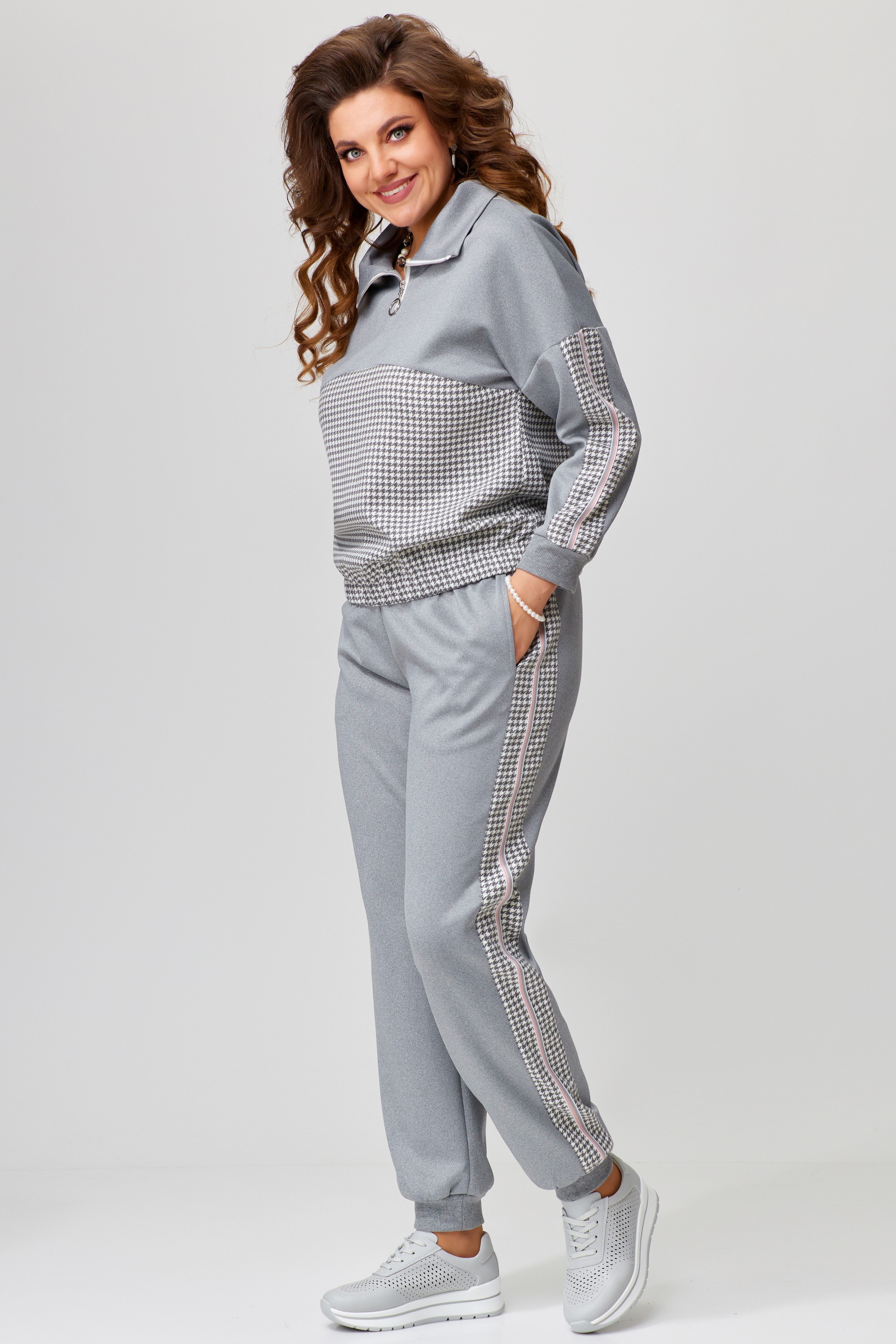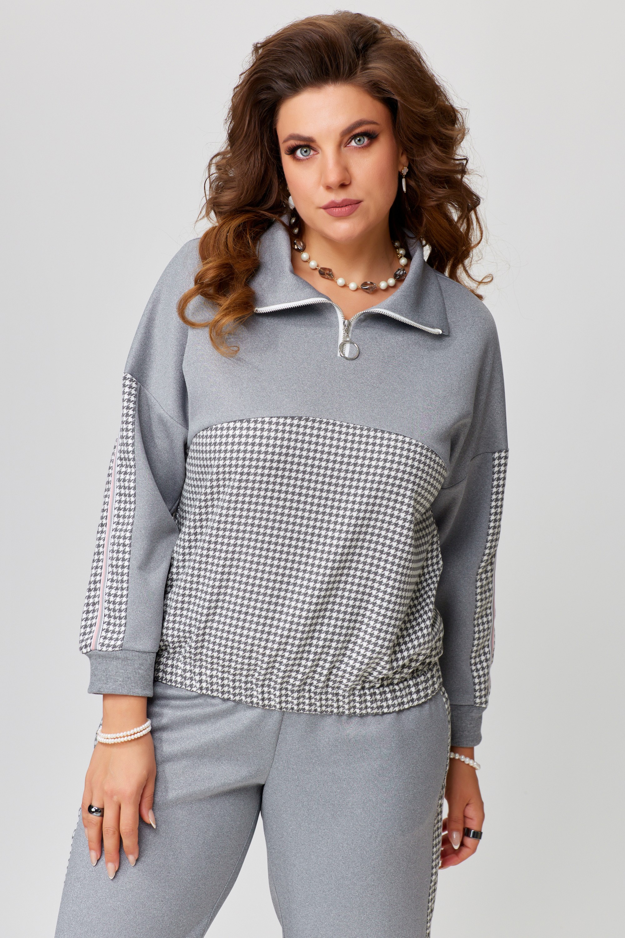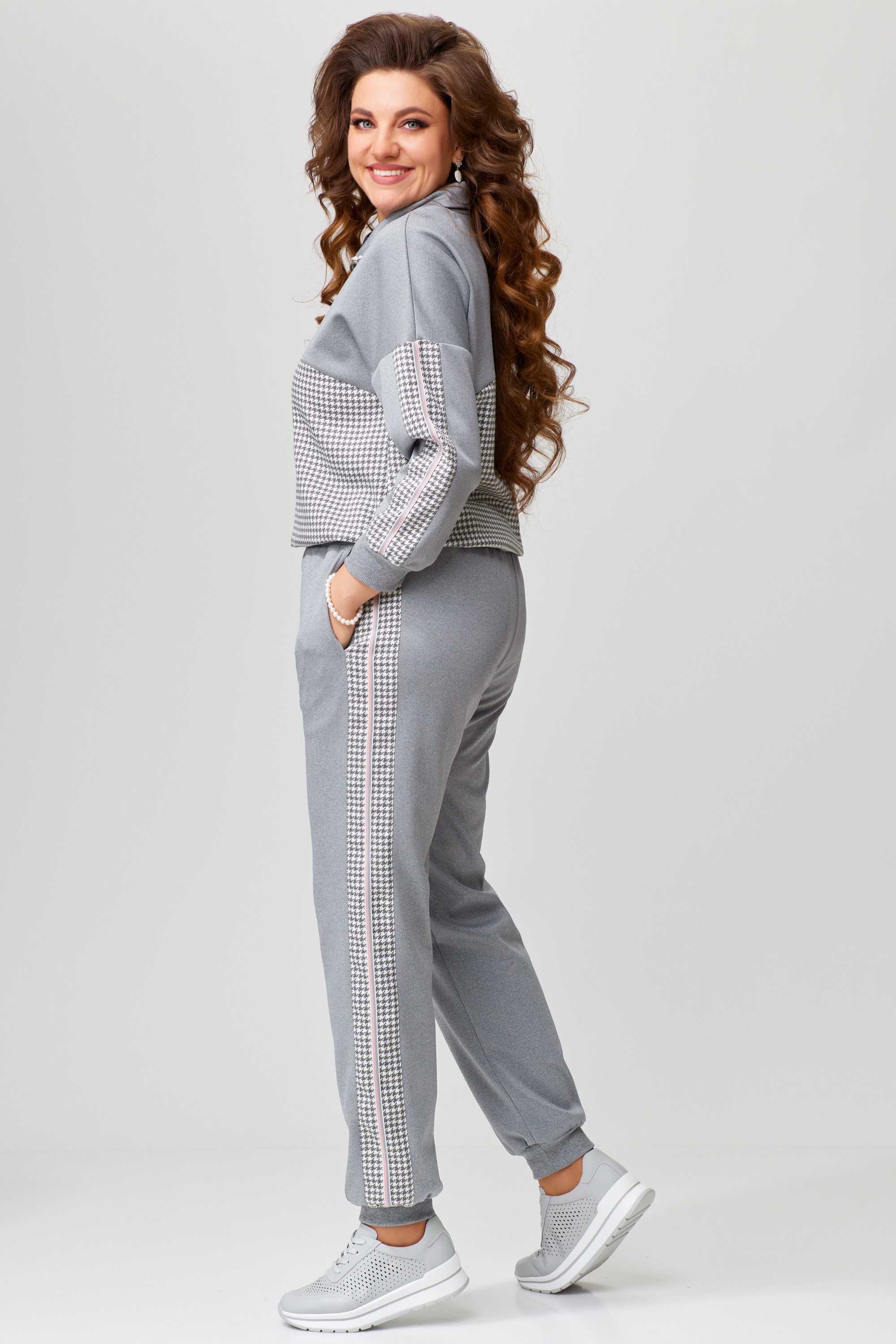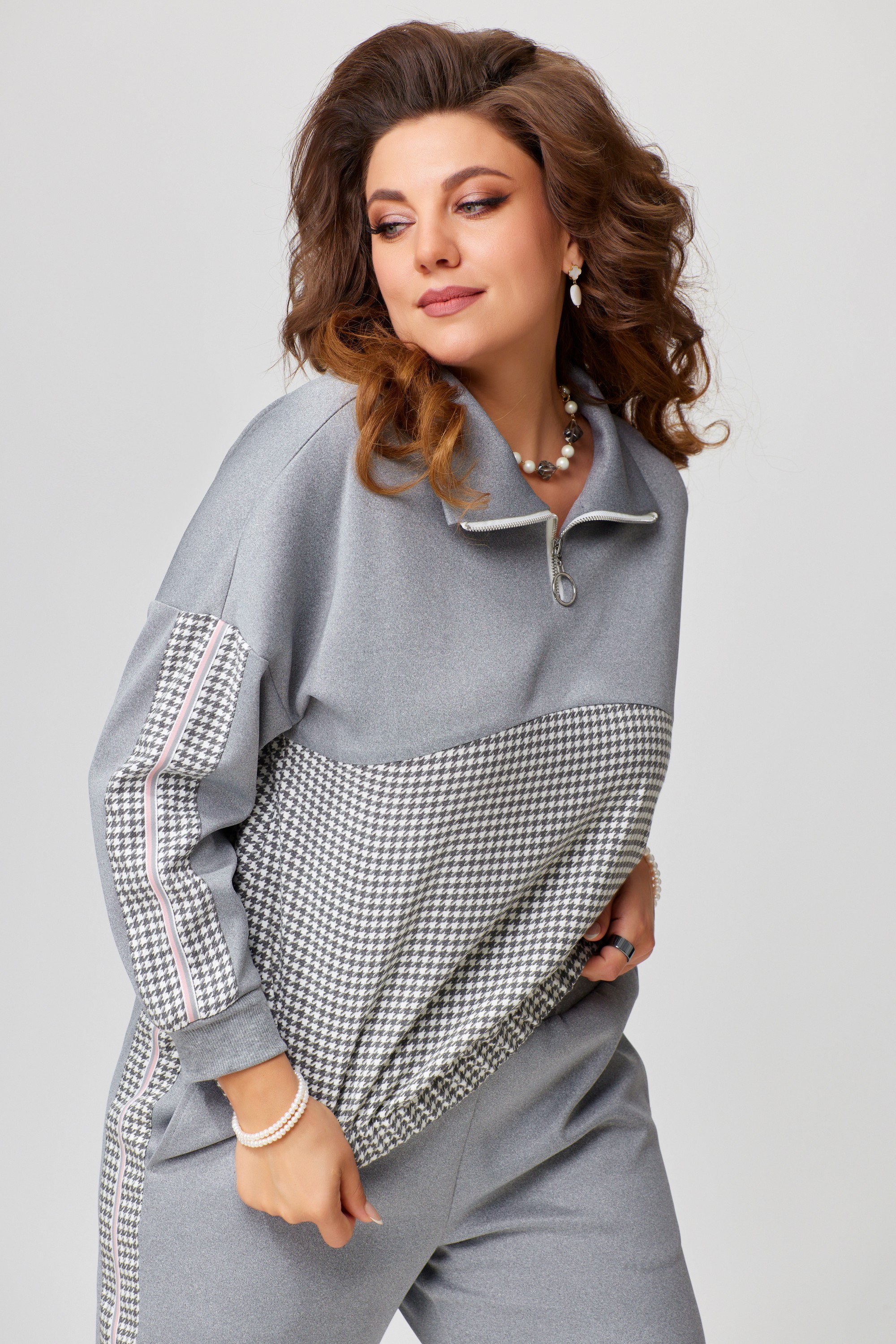 Женский спортивный комплект "Васса" состоит из джемпера и спортивных брюк. Джемпер без подкладки, свободного покроя со спущенным рукавом. Воротник-стойка с застежкой на молнии, по спинке и полочке кокетка из трикотажной ткани, подрезы по спинке и полочке из текстильной ткани с рисунком гусиной лапки. По рукаву вставка из текстильной ткани с настроченной декоративной тесьмой. По низу джемпера резинка, по низу рукава - манжет.